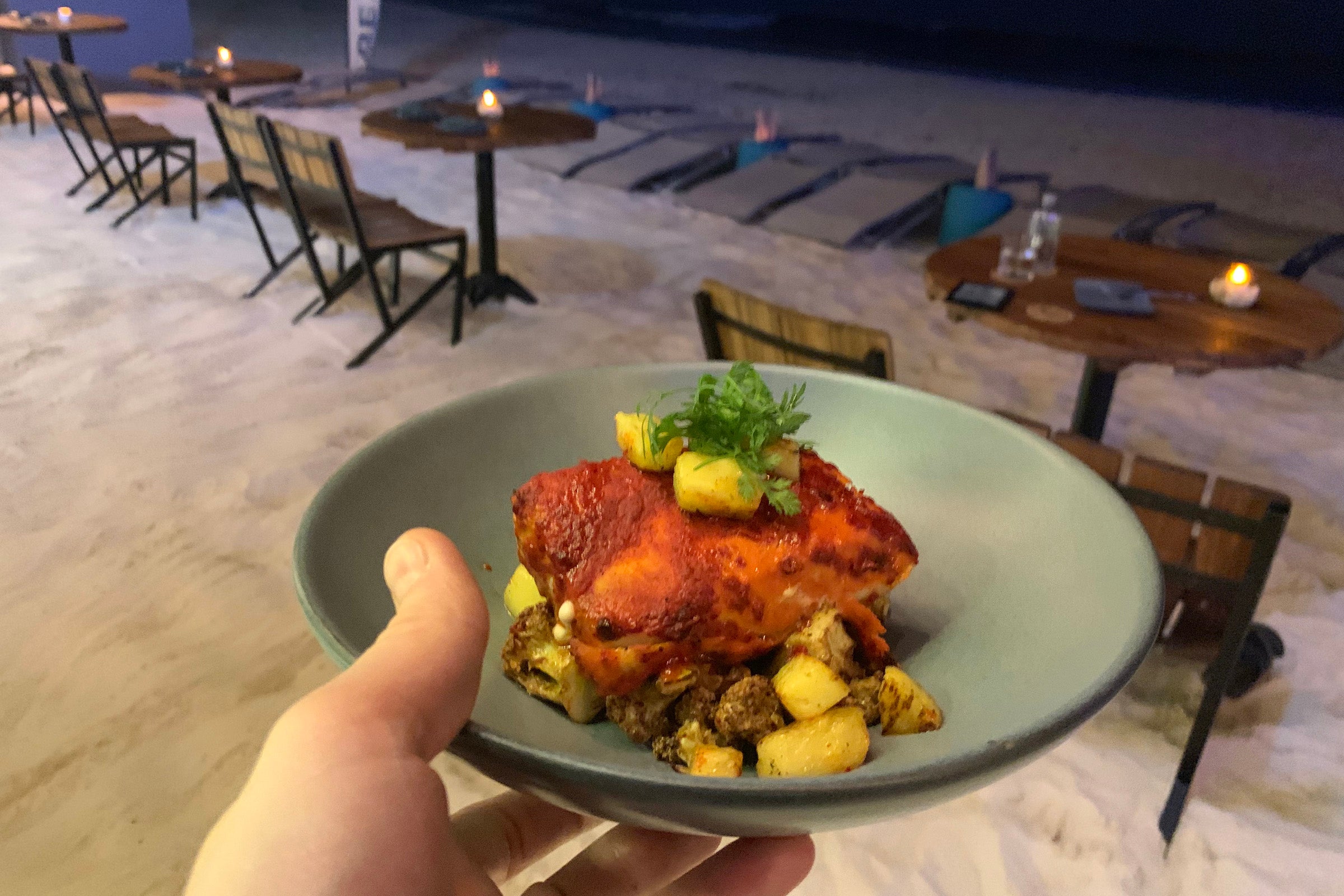 For my entree, I was eyeing the whole catch of the day, which was described as "golden fish" with a pastor marinade. At $50, that was out of my solo-diner budget, though, so the waiter offered to do a filet prepared in the same style, instead. At $17, it wasn't cheap, considering the prices at local restaurants, but, boy, was it delicious.