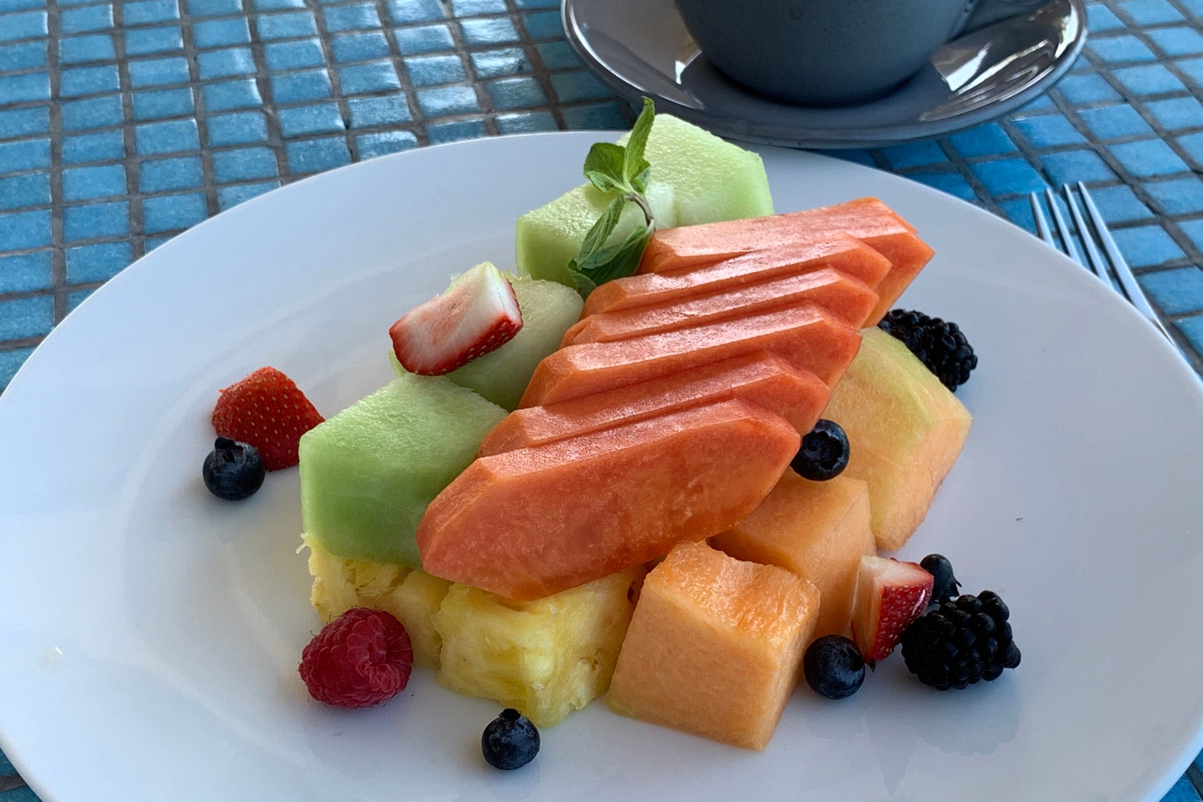 There wasn't a buffet — everything is ordered a la carte — so I started with a fruit salad ($7) and Americano ($3.50).