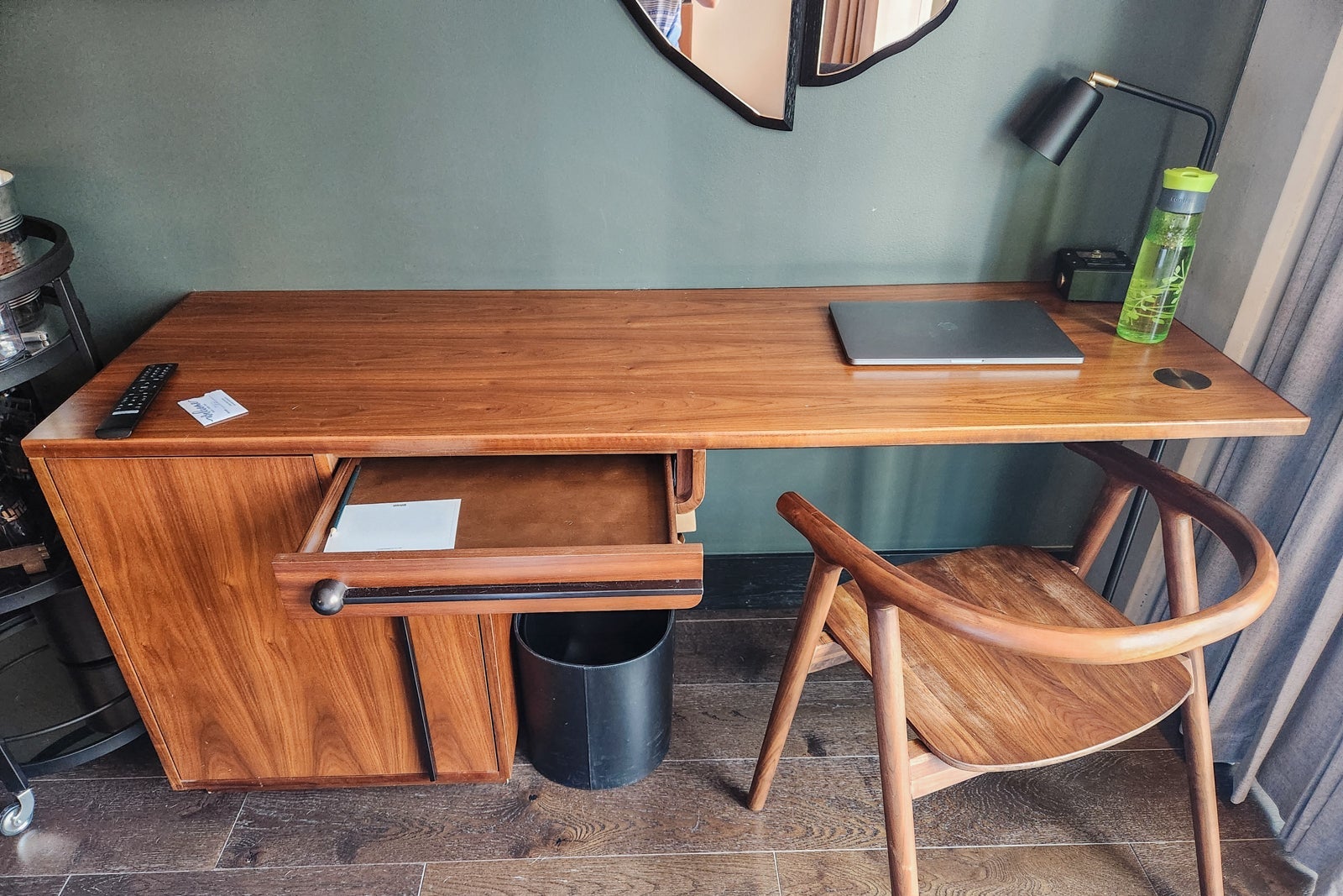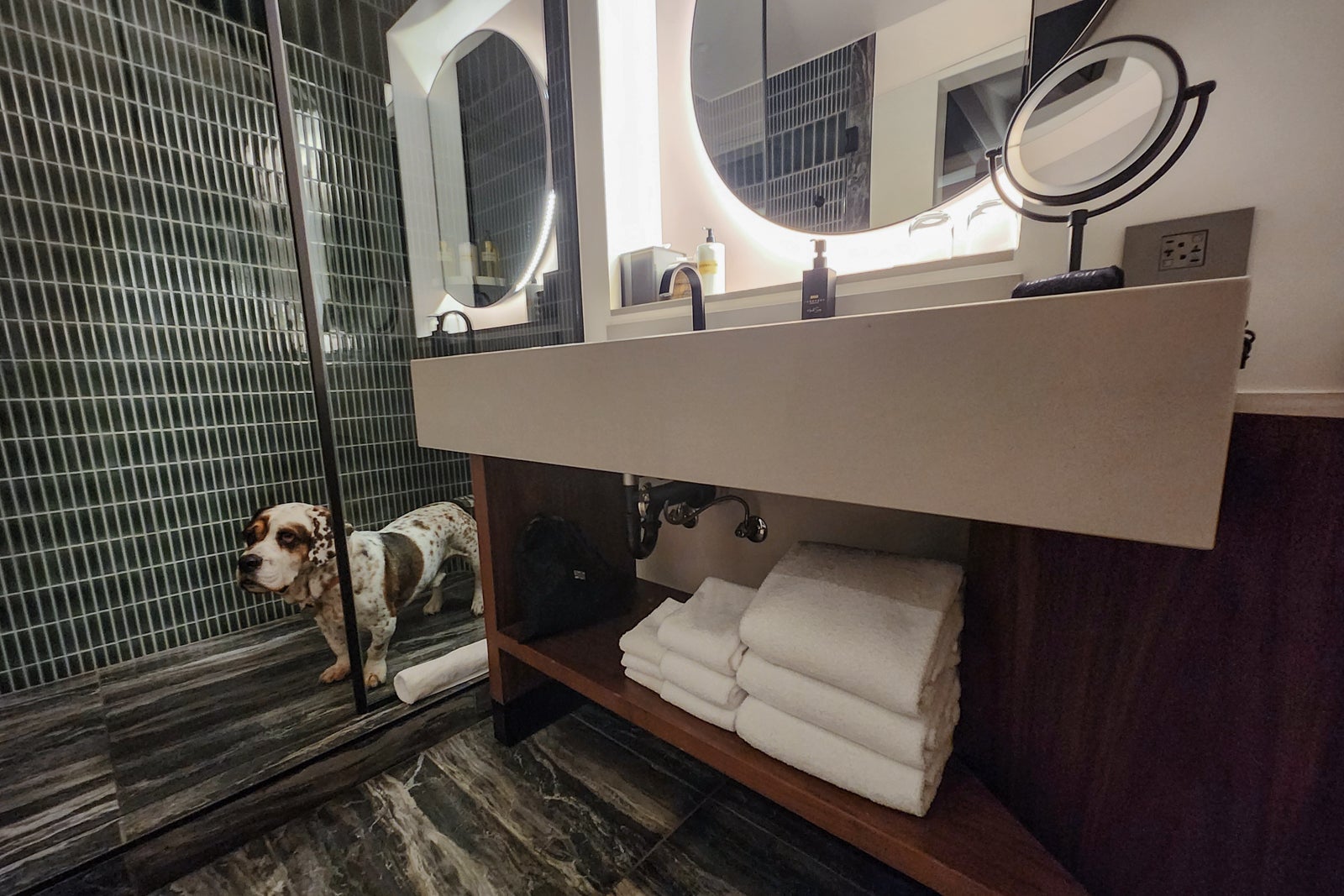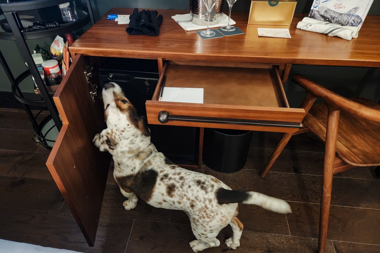 Since I'd brought my mischievous dog along, all the snacks lying around were more an inconvenience than an amenity. I had to lock the snack tray in the closet, shrinking my storage space even more. In addition, all the delicate glassware everywhere seemed at odds with the hotel's extremely dog-friendly policy (more on that later) and could pose a challenge for anyone traveling with boisterous pets or young children.