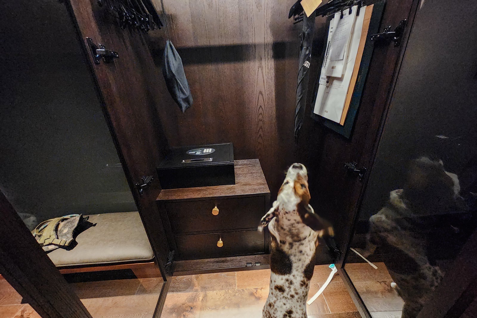 The closet had a couple of slick touches that I found very useful. Its glass doors automatically lit up when I opened them (and beeped if I forgot to close them), and motion-activated lights underneath illuminated the floor when I walked by (handy when I needed to find my way to the bathroom during the night).
