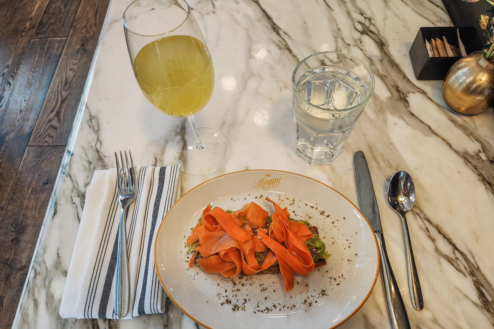 Since I'm vegan — and French cuisine isn't known for being particularly veg-friendly — I was surprised to find myself becoming a Chez Maggy convert during the course of my stay. The restaurant staff members were extremely helpful when I informed them of my dietary needs, and every (veganized) dish I sampled was delicious, including the chopped salad ($14), crispy chickpea wrap, oatmeal ($12) and avocado toast ($13).