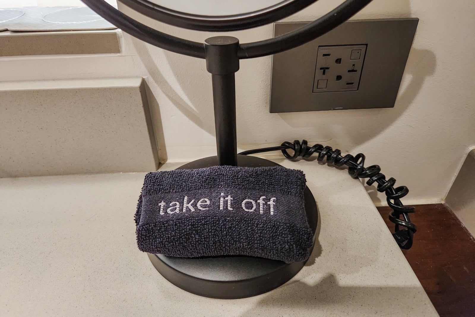 Instead of an iron, there was a steamer provided in the closet. There were also bags and instructions for how to get your shoes shined and gym clothes laundered for free, some of the amenities included with the $25 nightly destination fee (more on that later).