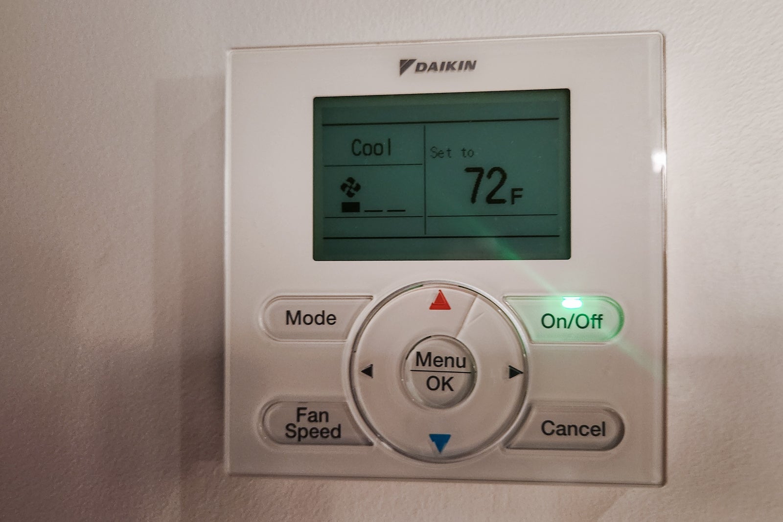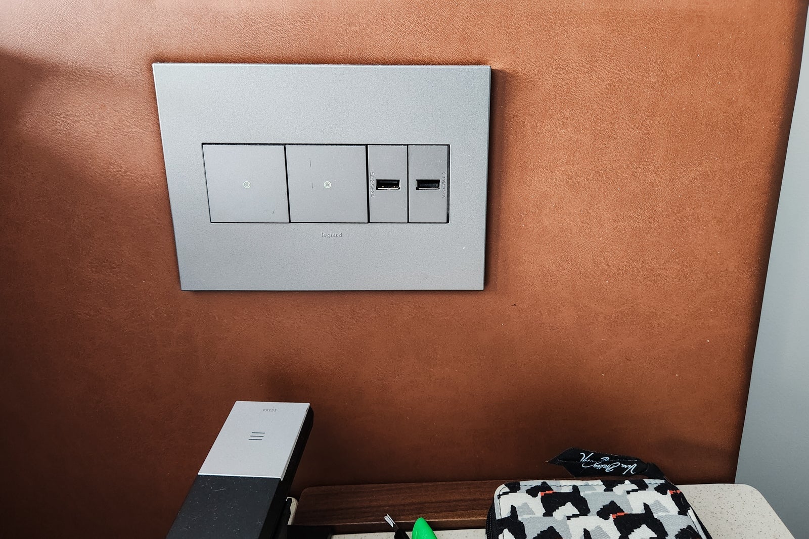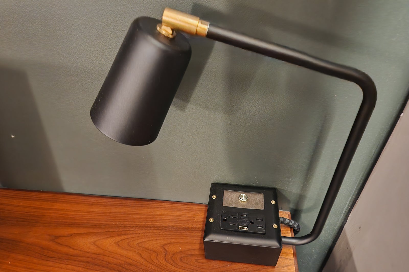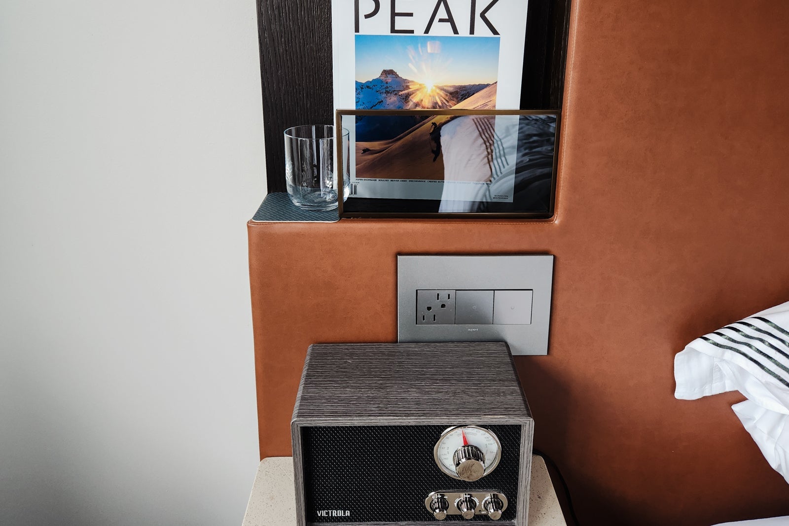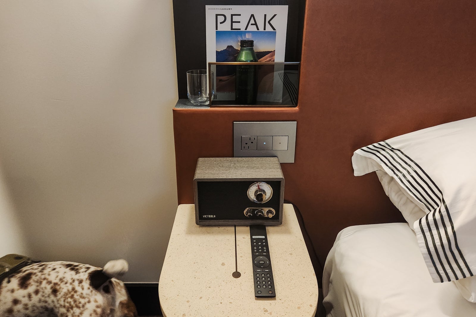 The nightstands held a phone and an old-school Victrola radio, which you can connect to your phone via Bluetooth to play music. The thermostat was easy to use, and I found both the heat and air conditioning extremely quiet when running. There were also both standard and USB outlets around the room.