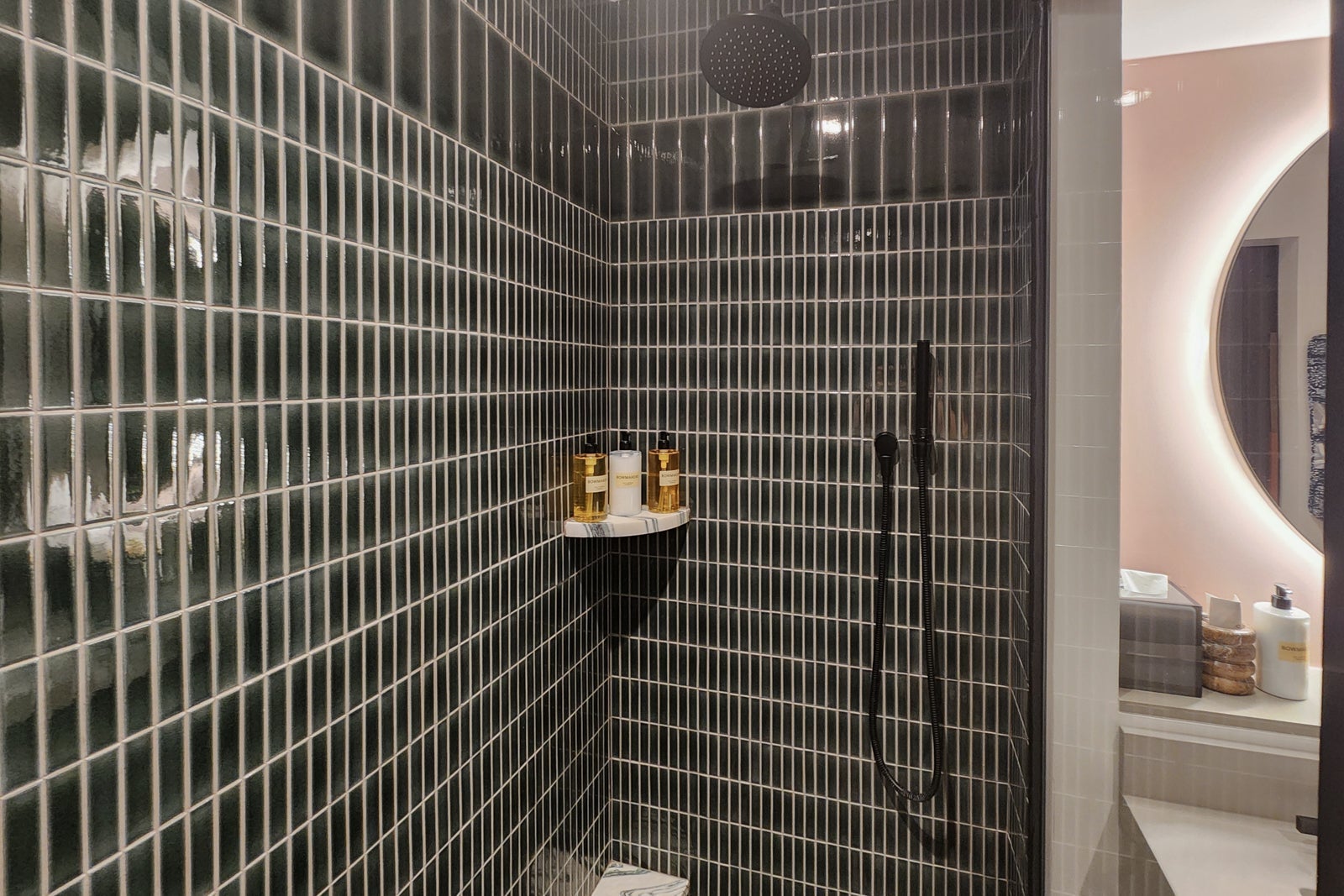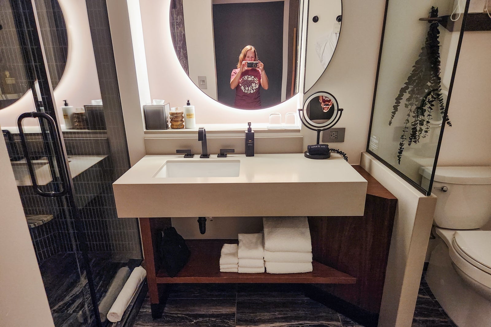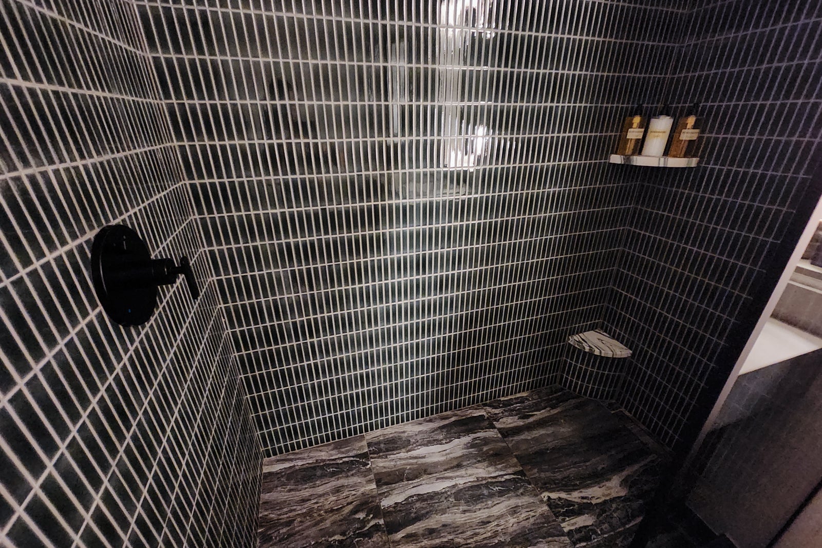 Although the shower was roomy, there wasn't much space to store toiletries. Similarly, there was no logical place to hang a hand towel near the sink.