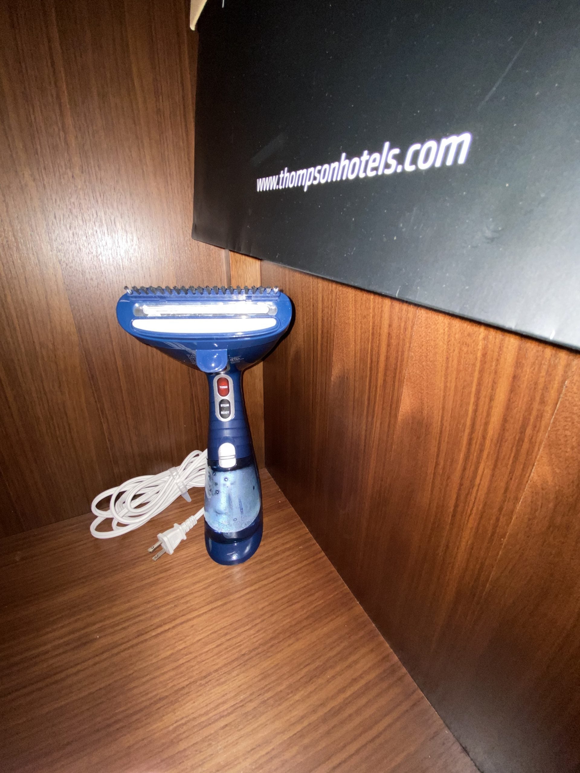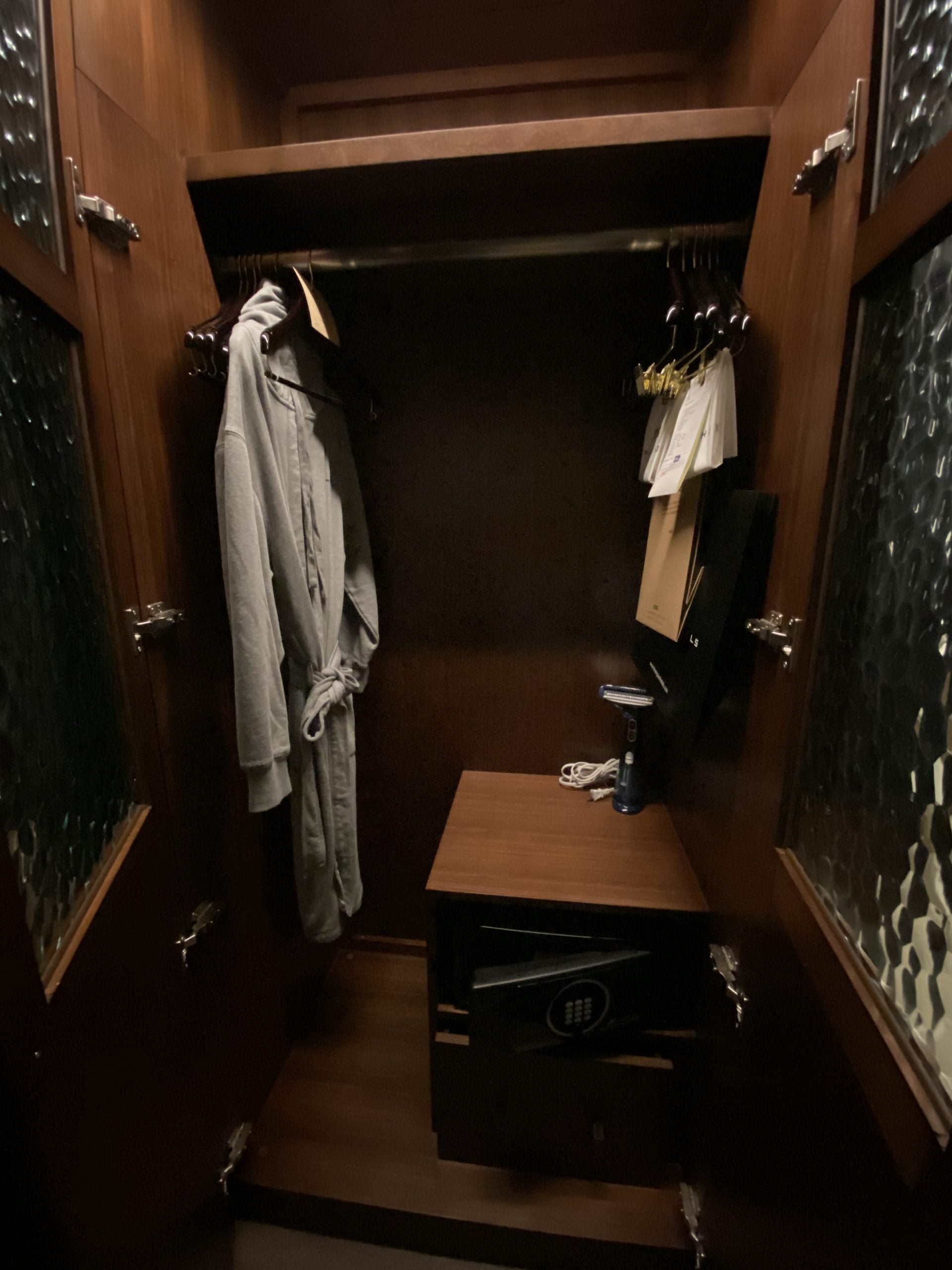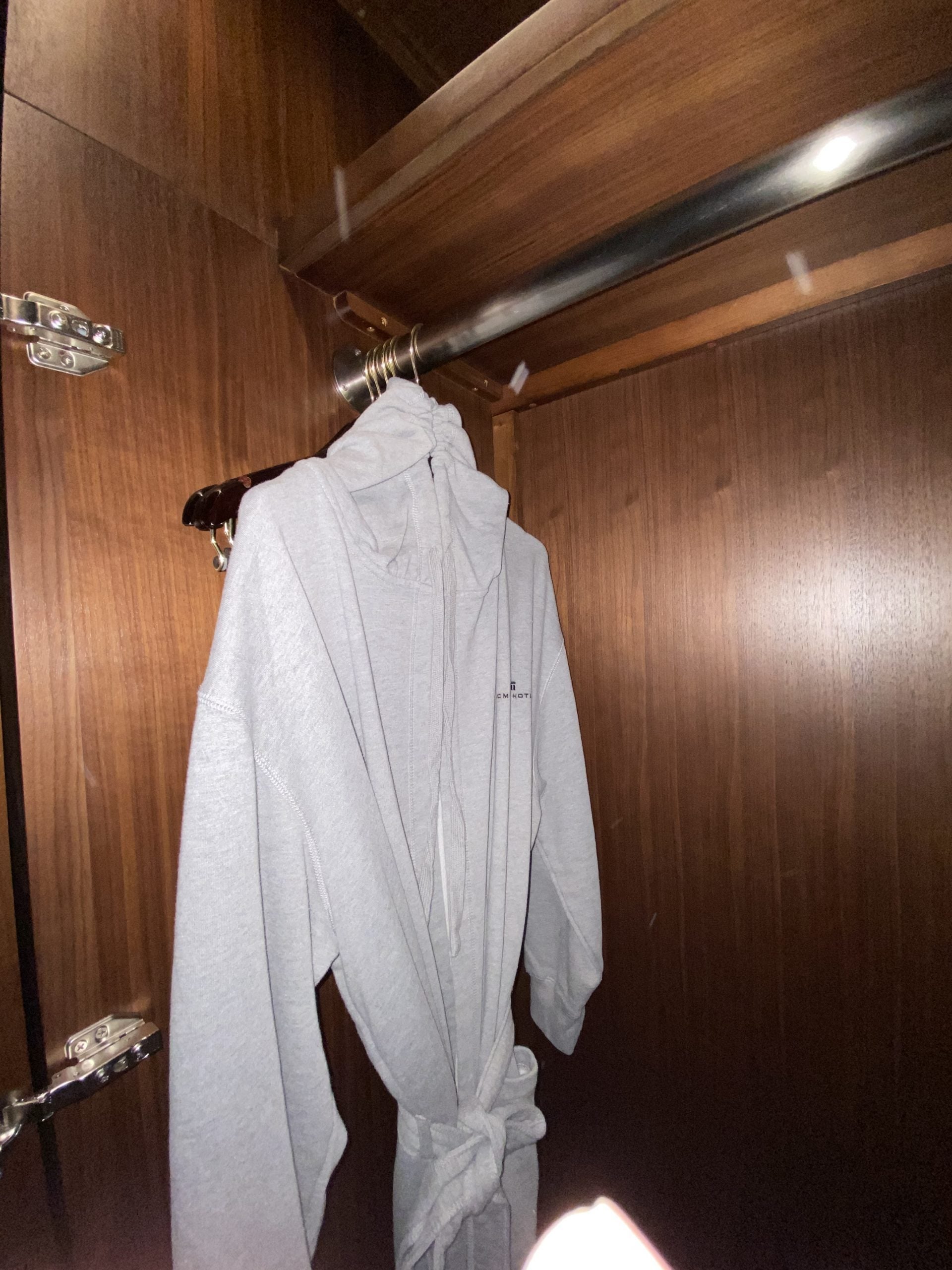 As you enter the room, there's a closet with plenty of storage, a laptop safe, one of the softest hotel robes I've ever worn and a clothes steamer -- but no iron or ironing board. There also weren't any extra pillows or blankets, but what we had was plenty.