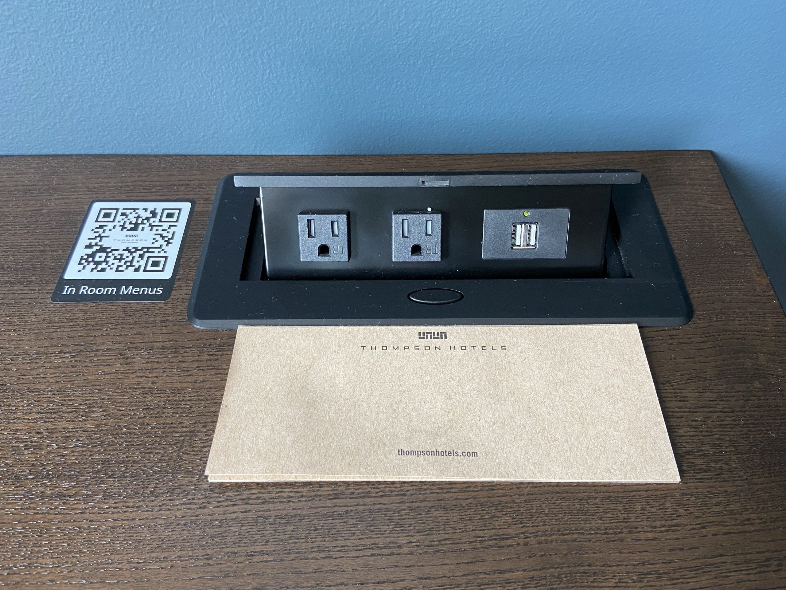 While comfortable, the room had a few flaws. The side of the room closest to the door had a power outlet and a USB port. The same wasn't available on the window side of the bed. I actually had to push back the nightstand, unplug a lamp and plug in my phone charger (good thing I always travel with a plug-style charger). There were more plugs on the smallish desk, but the space was limited.