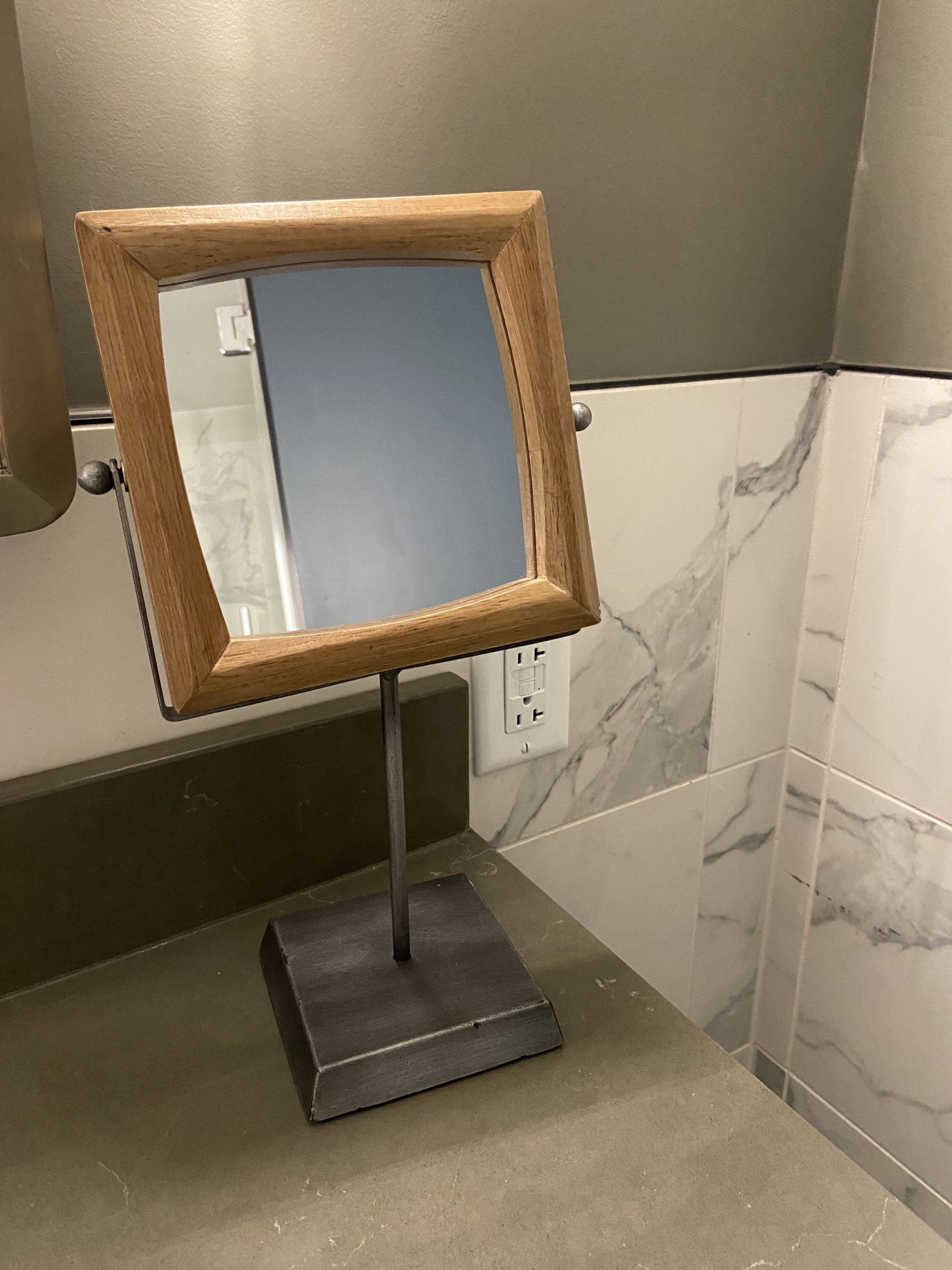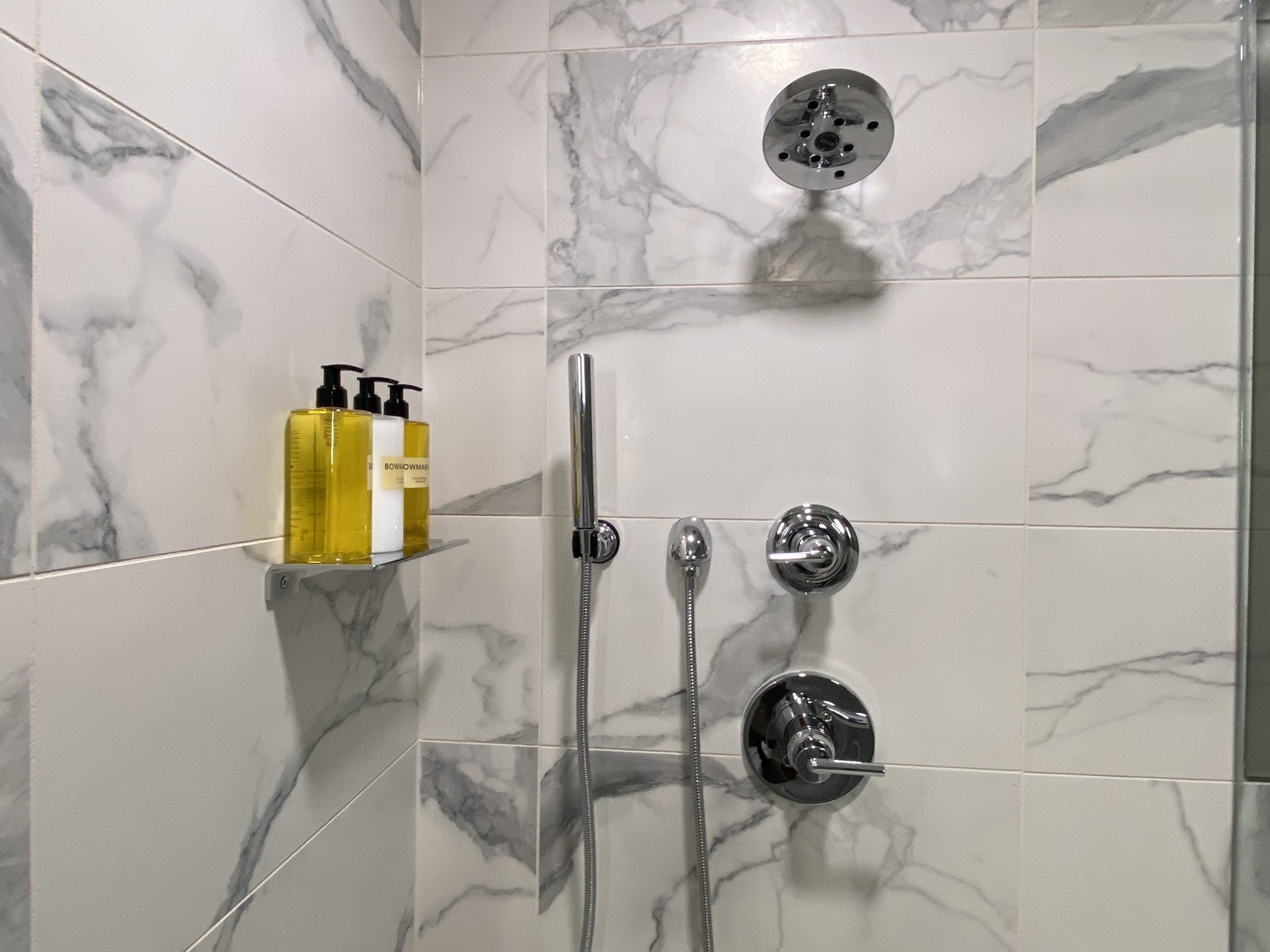 What made this hotel special was the spacious stone-and-glass bathroom, complete with a rainfall shower. The sink area had enough space to hold the make-up, perfume and bathroom accessories for two people, plus D.S. & Durga bath products (but in a pump instead of small bottles). The bath sheets, washcloths and hand towels were soft and luxurious, and the body wash smelled divine. My only nit was that the make-up mirror was a bit small and low, and wasn't magnified.