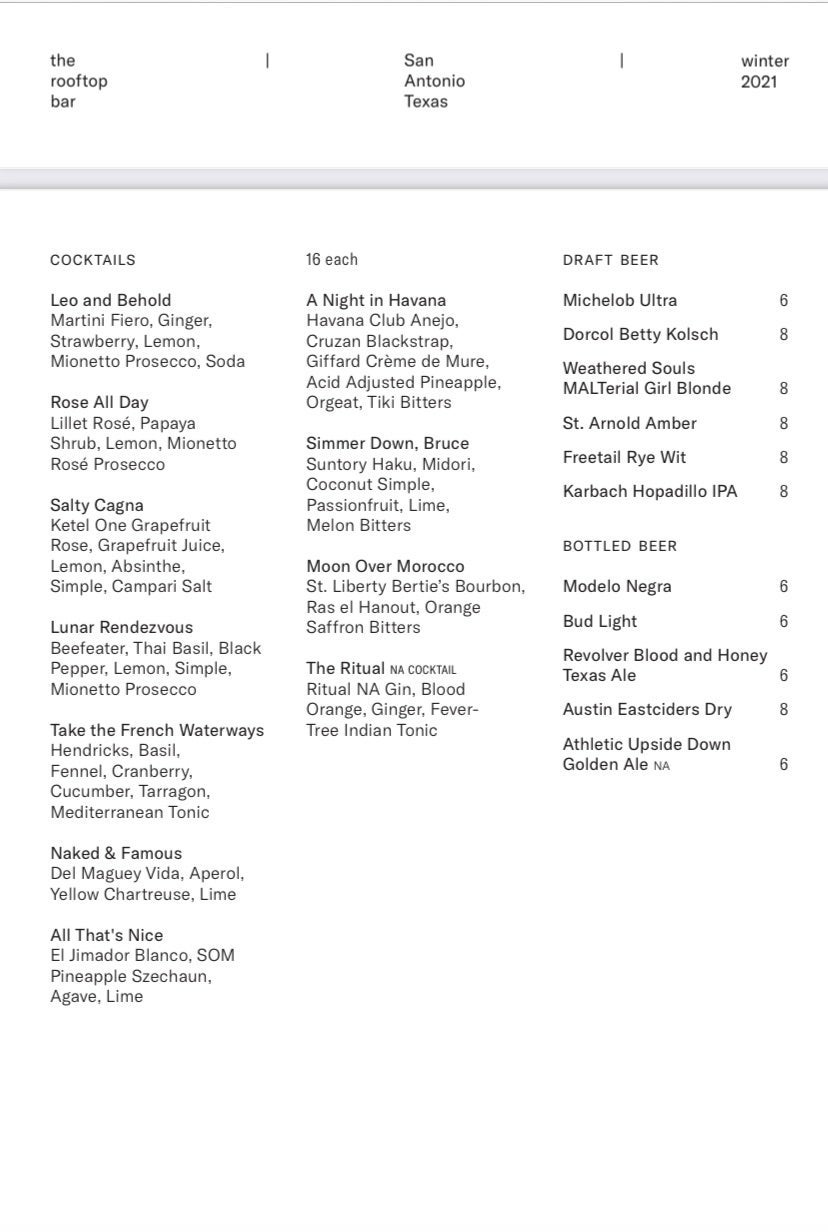We went to the 20th floor to check out The Moon's Daughter bar and restaurant. Happy Hour had just started, and it's a popular meeting spot for both hotel guests and locals, with great views of downtown San Antonio and beyond. I spoke with Chef Kris, who said they're still getting up to speed on service (which was excellent, by the way) and still trying to get up to full staff. He noted that the pandemic has slowed down the hotel's efforts, but he hopes to be fully staffed by mid-summer. A big goal is to offer a true Sunday brunch, which is bound to be popular with guests and local residents alike.