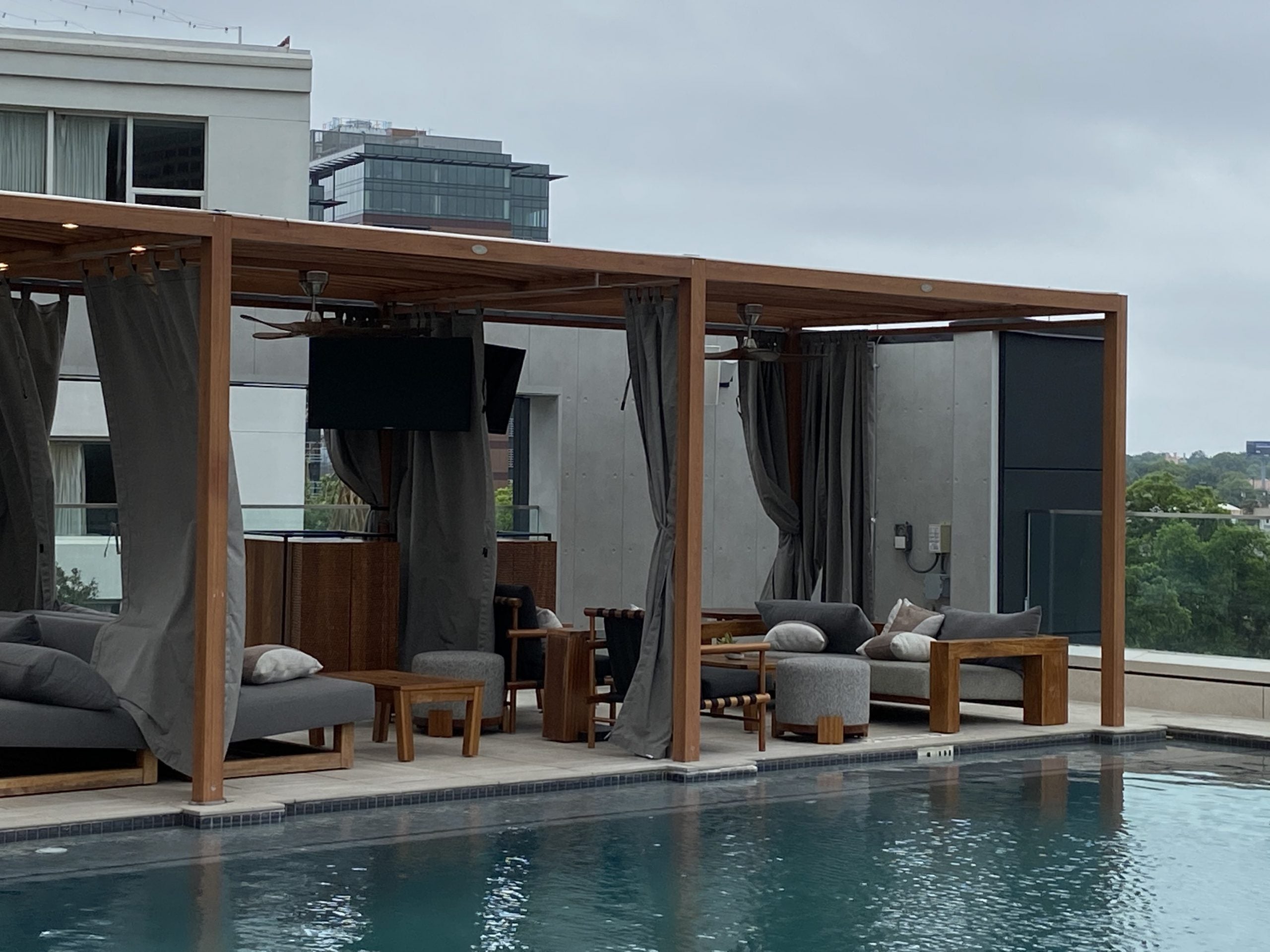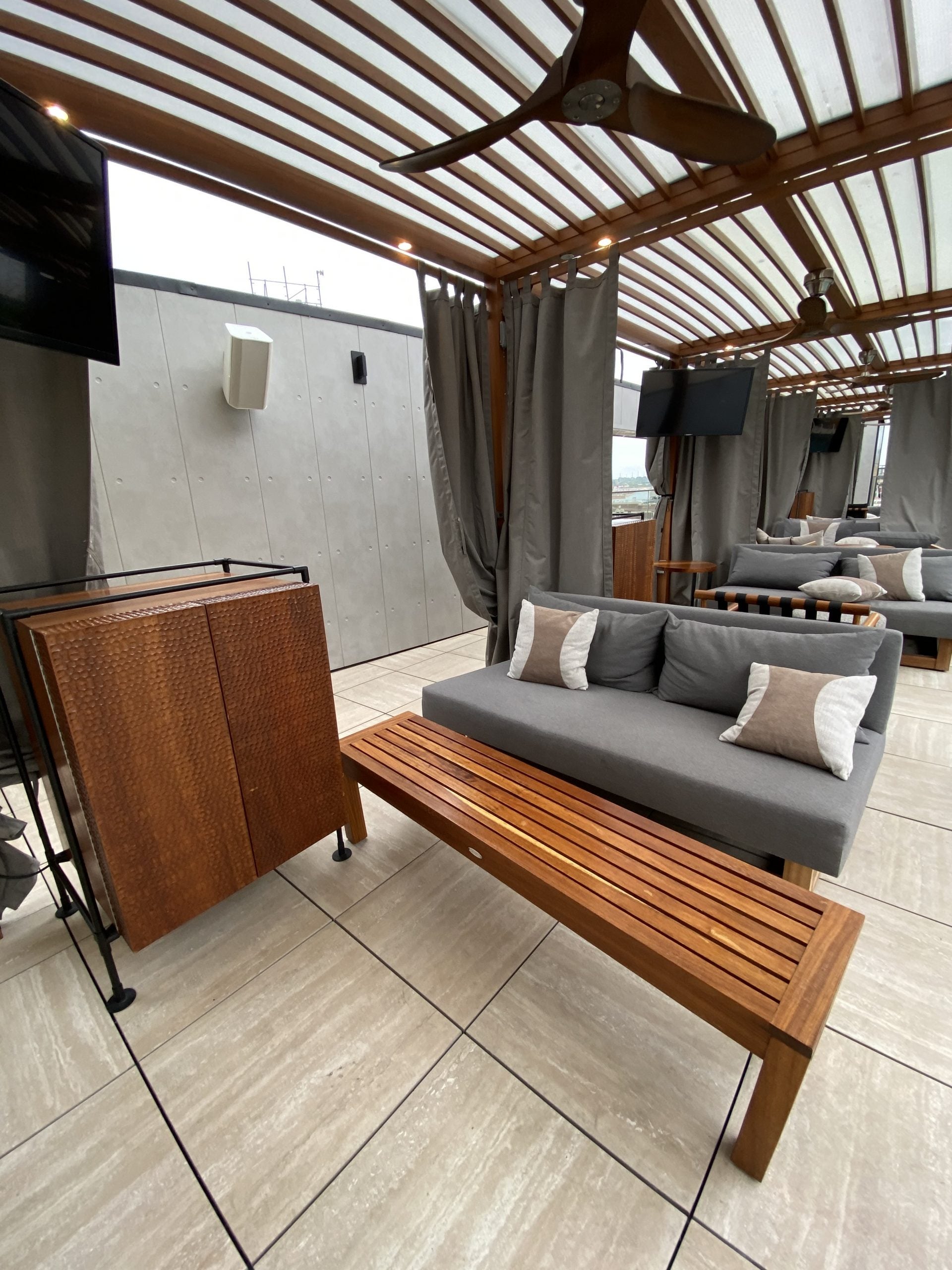 The pool, on the fourth floor of the hotel, is only open to hotel guests. You enter by using your room key. It boasts a full bar that also serves snacks, private cabanas with a minibar, a ceiling fan and flat-screen televisions and a winch to help those who are disabled take a dip in the pool. There also are expansive views of the city. It rained the entire weekend we were there, so we weren't able to check out the bar and food menu.