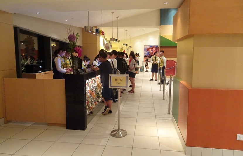 No matter what time of day or night, the check-in desk always seemed to be bustling with travelers ready to begin their vacation. While going through some of the details of the hotel and theme park, I learned that Shanghai Disneyland is open from 8:00am until 10:00pm — don't miss the fireworks at 8:30pm — while Disneytown is open from 10:00am until 10:00pm.