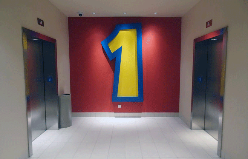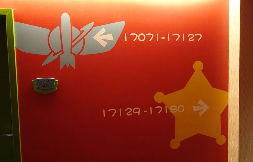 Since there were so many nice Toy Story themed areas all over the hotel, I wanted to call out a few I thought were memorable enough to share with you. First off, each floor has a large number sign with unique colors and fonts similar to the movie title design.