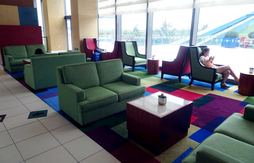 The lobby area is by no means large, but has a casual feel, with its colors drawn straight from the movies.