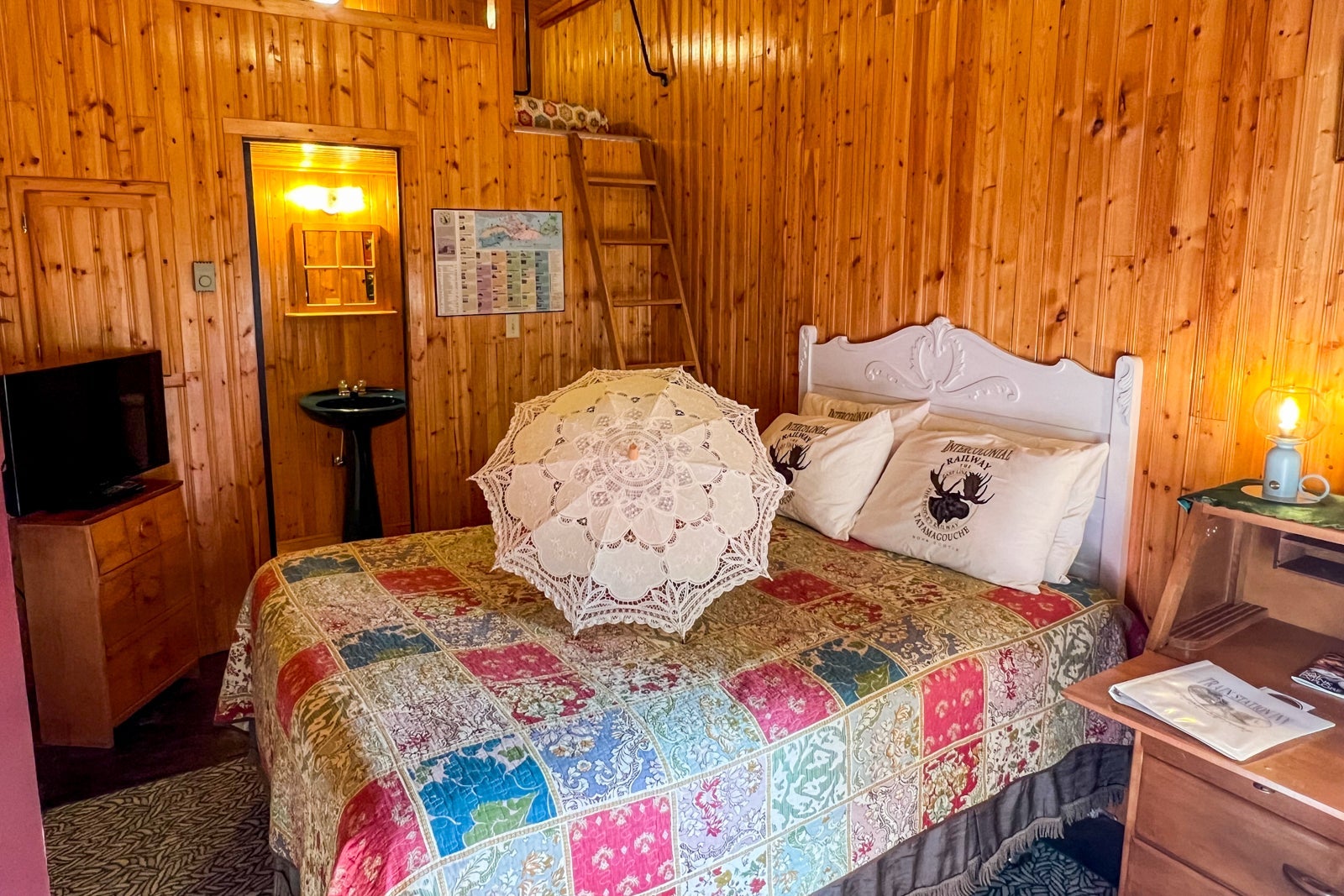 All 10 rooms at the Train Station Inn are reimagined rail cars — eight of which are cabooses and two of which are boxcars. Most are lined up end to end, running east from the main building, though three of them (Boxcar Jane and Cabooses Nos. 9 and 10) are across the road.