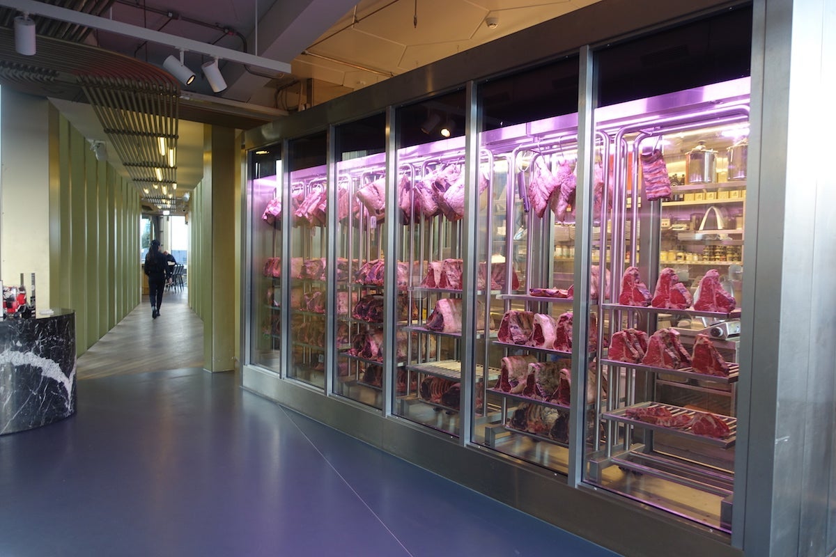 The other restaurant in the Exchange building is called Mr. Porter and focuses on steaks — its huge, glassed-in aging room can be seen in the photo below. The lunch and dinner menus here are what I'd call contemporary chophouse, with things like calamari, fish crudo and vegetable carpaccio, shrimp salad and whole sea bream. The restaurant is open for breakfast, lunch and dinner every day, with closures of about an hour or two between each meal.