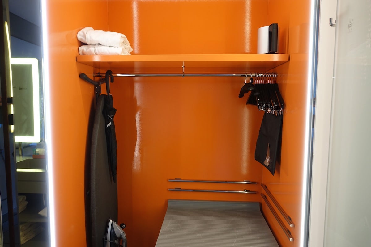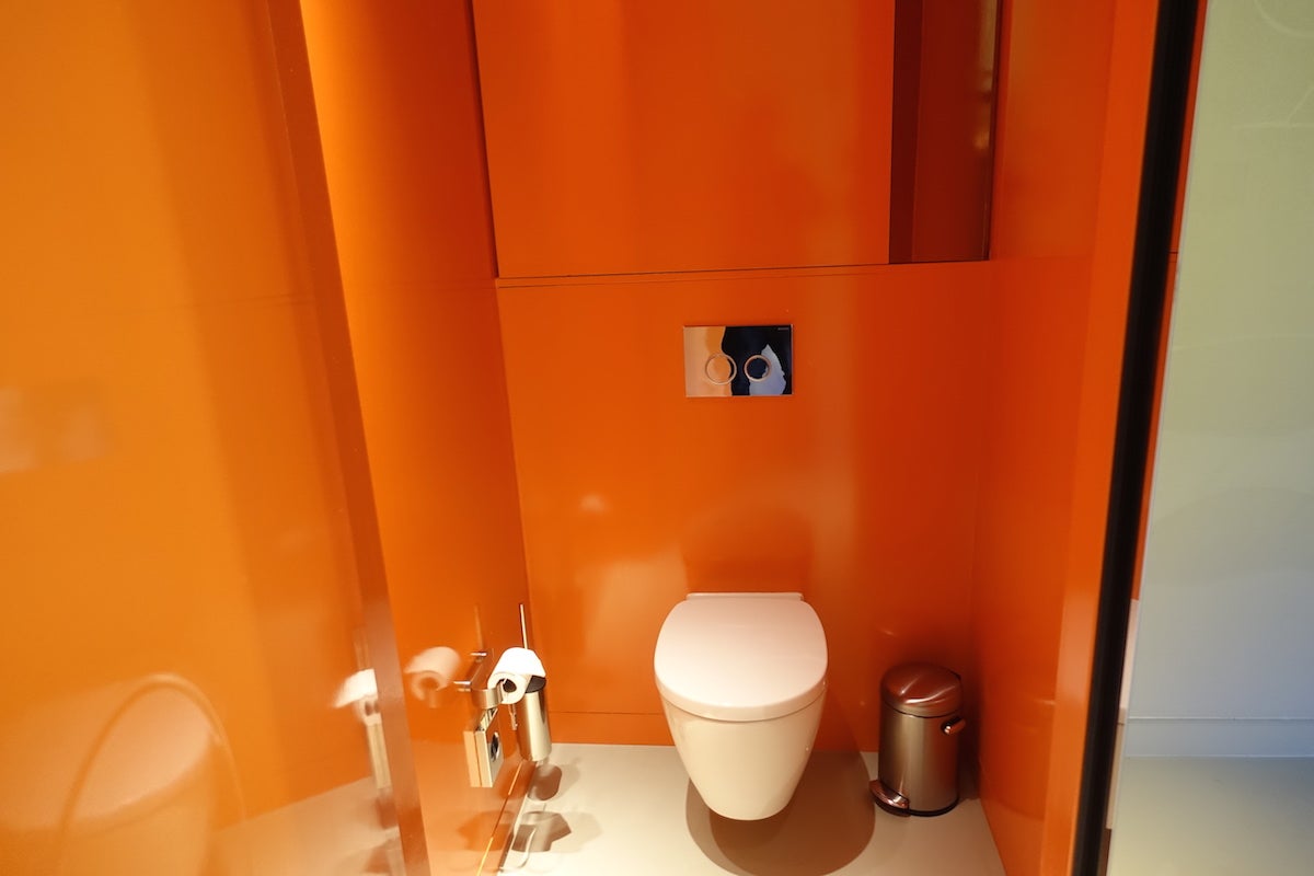 And now for the bathroom. As I mentioned, the room had a very open floor plan, so there's really no separation and you basically walk into the bathroom when you enter the room. The WC with the toilet was inside a small, very bright orange closet right next to the front door.