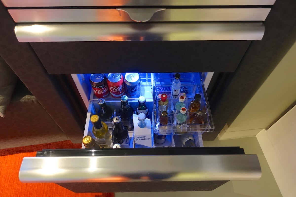 Running along the windows was a nice little love seat and a mini-bar.