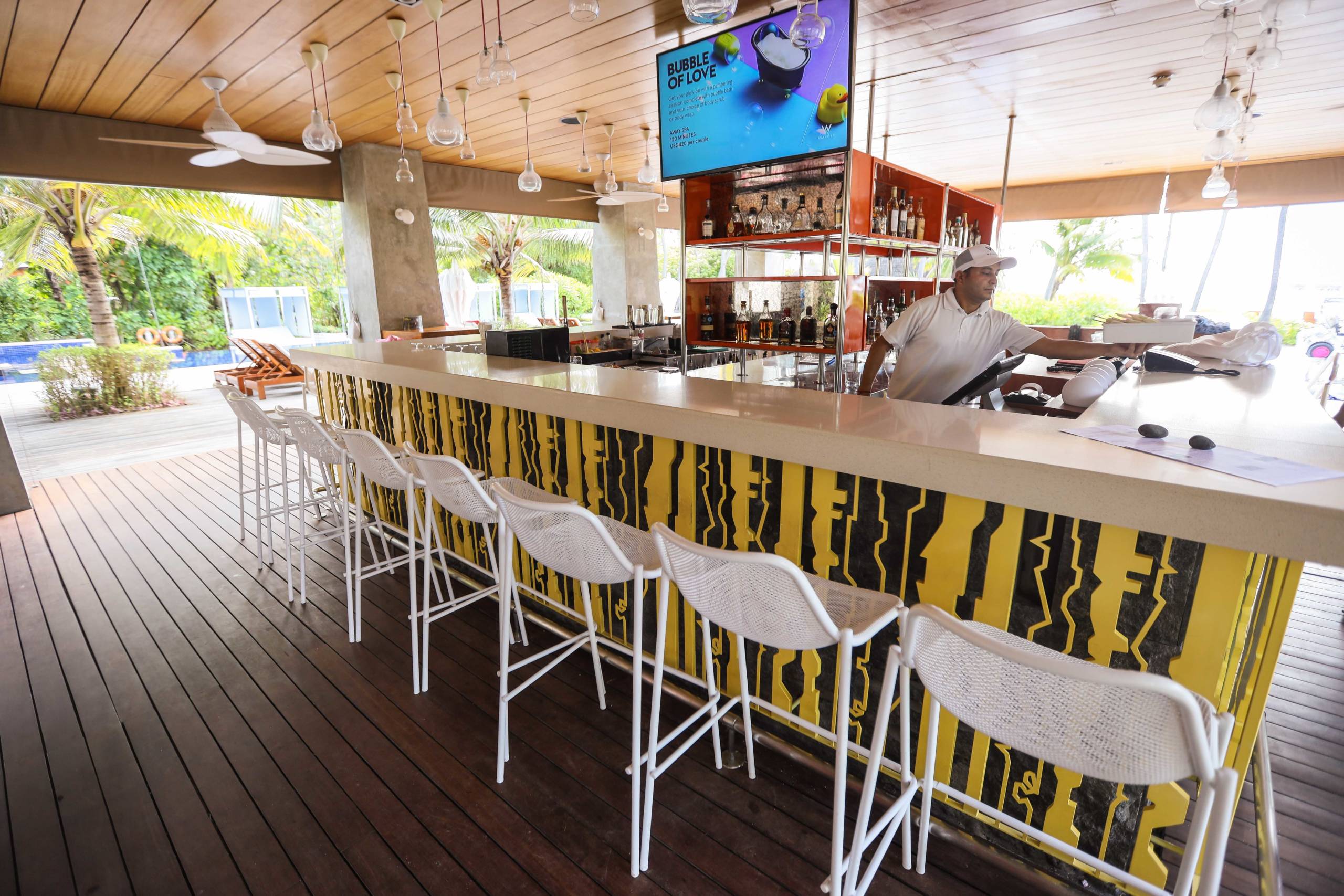 It is a resort ready to party, but in a good way. Funky music plays from the walkways, the public areas and the golf carts that zip you around the resort.