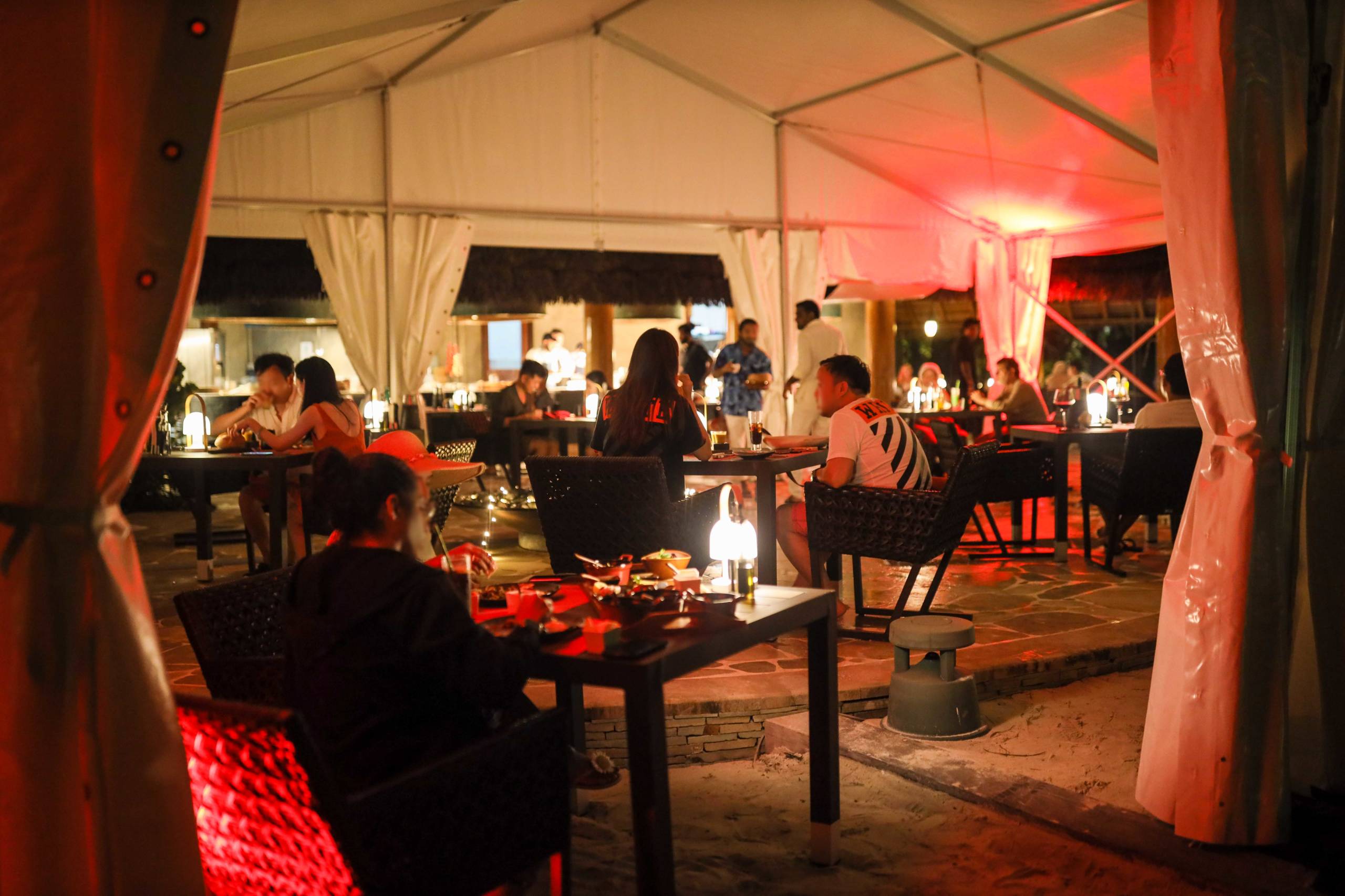 They were particularly handy in bad weather, when the plastic sides could be zipped up. There were some torrential downpours during my stay, but the staff arrived with the golf carts to keep everyone as dry as possible -- until the guests embraced the rain and ran into the sea.