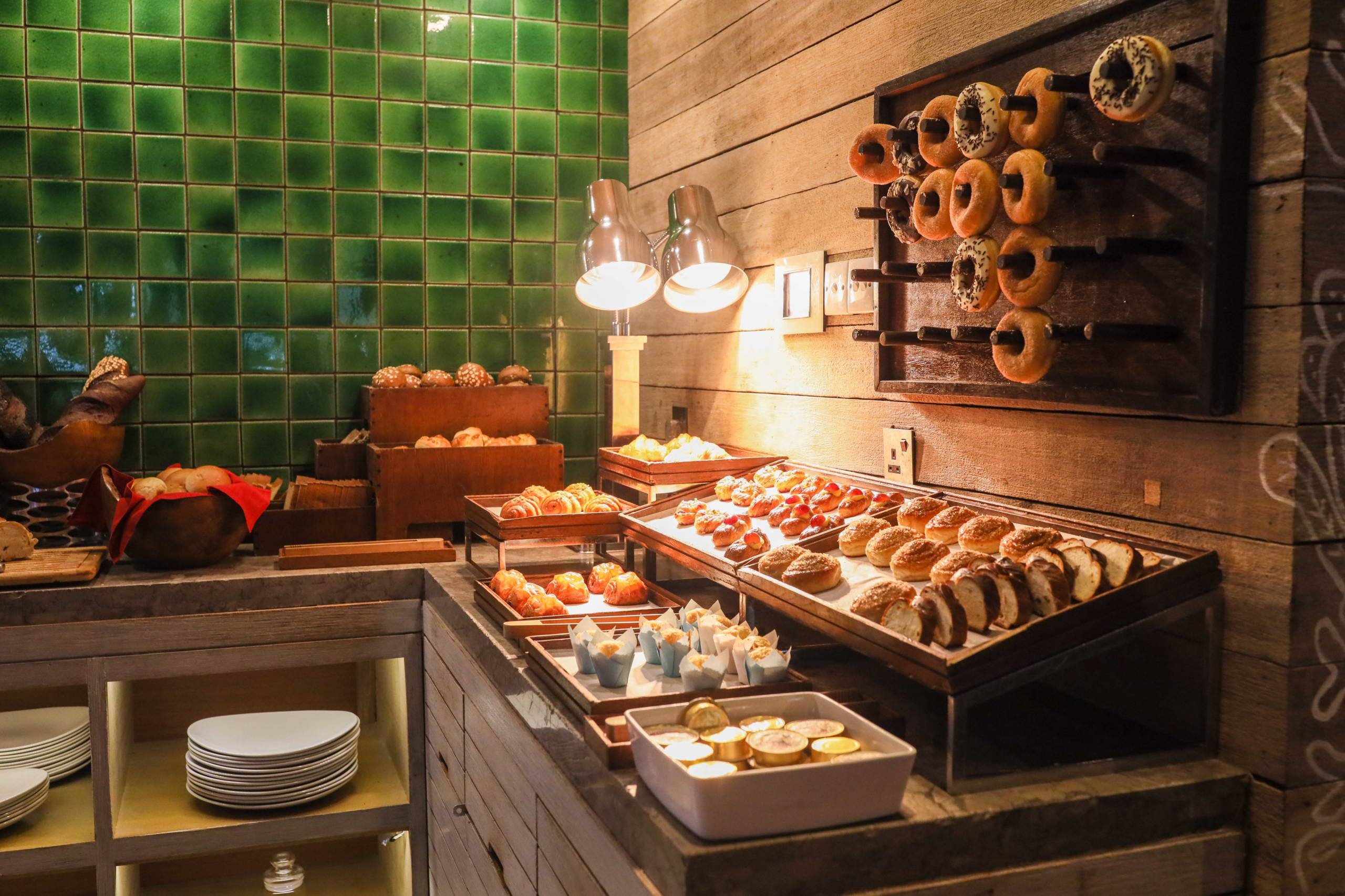 The buffet includes all the usual suspects and some higher-end additions like fresh juices and a naughty chocolate fountain. Eggs are made fresh to order, as are pancakes.