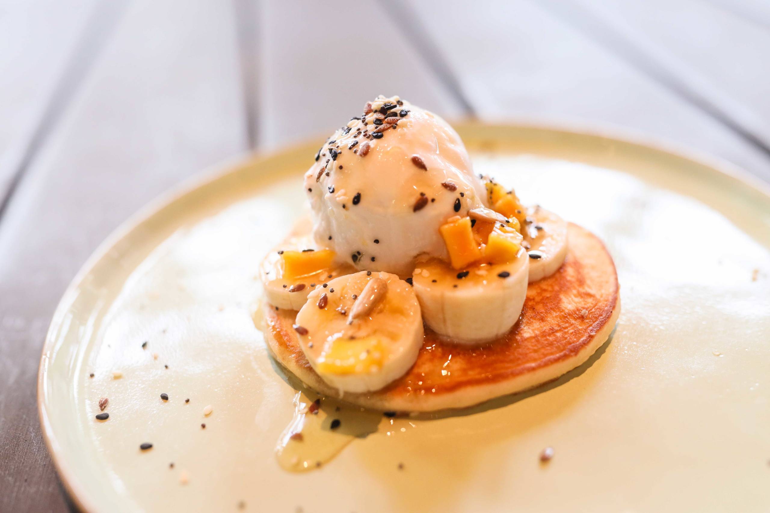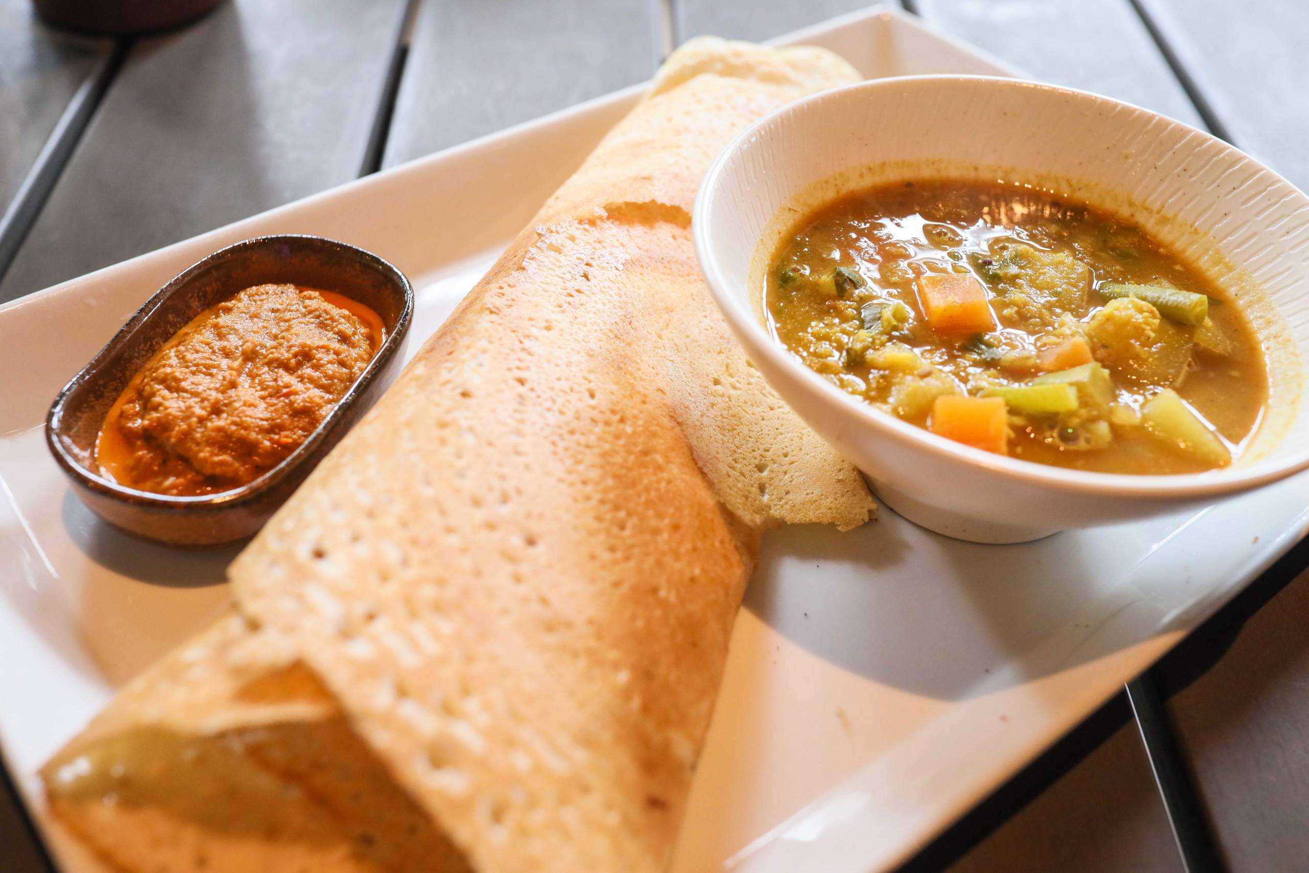 My banana pancake with coconut sorbet was great, as was the healthy bowl made up of yogurt, almonds, chia seeds, granola and kiwi. I also spotted some off-menu dosas being served. If you're a fan of this Indian breakfast pancake, go for it. It came with a delicious spicy vegetable gravy.