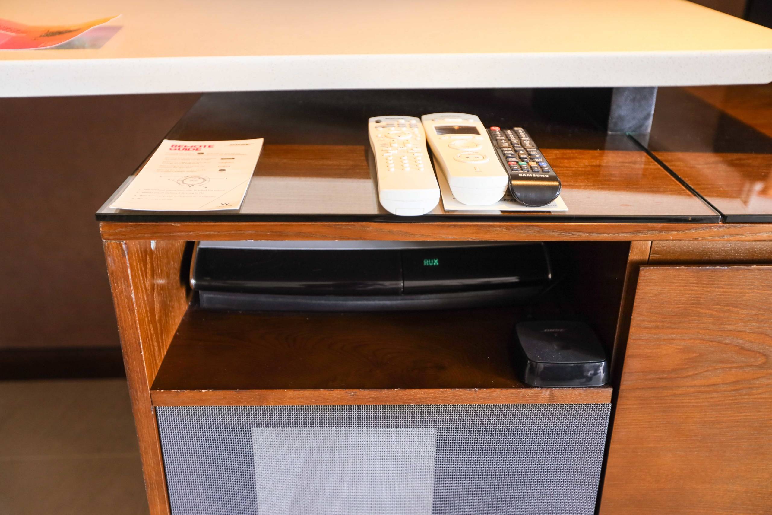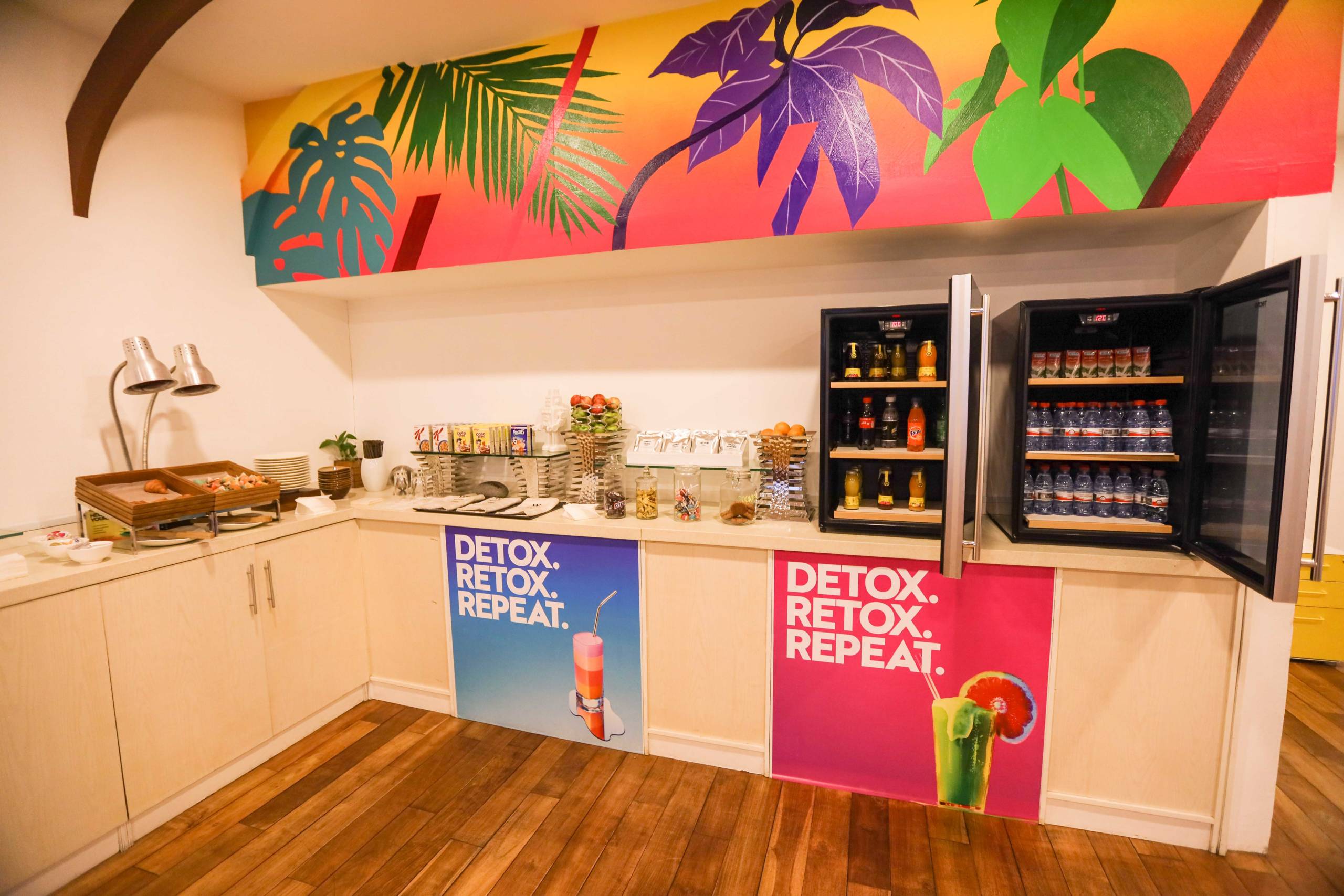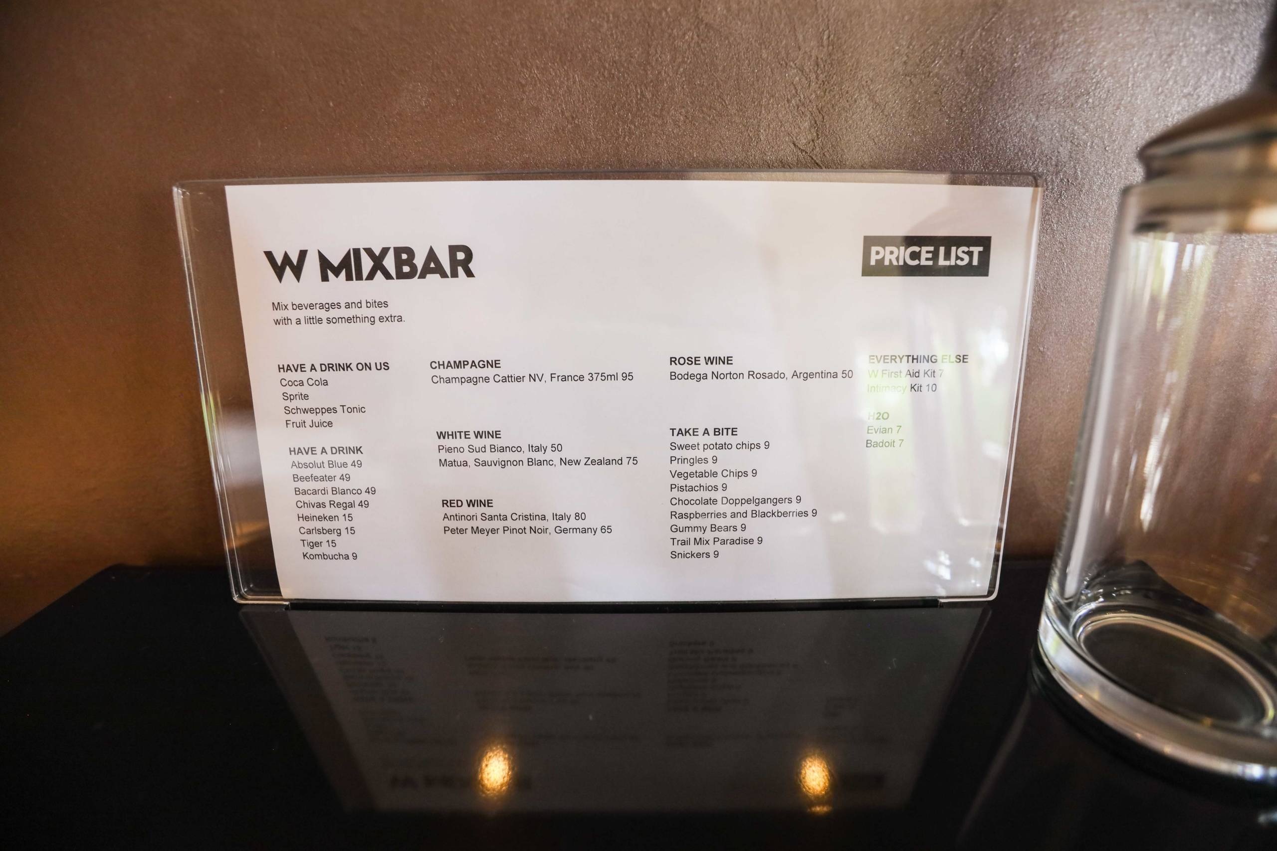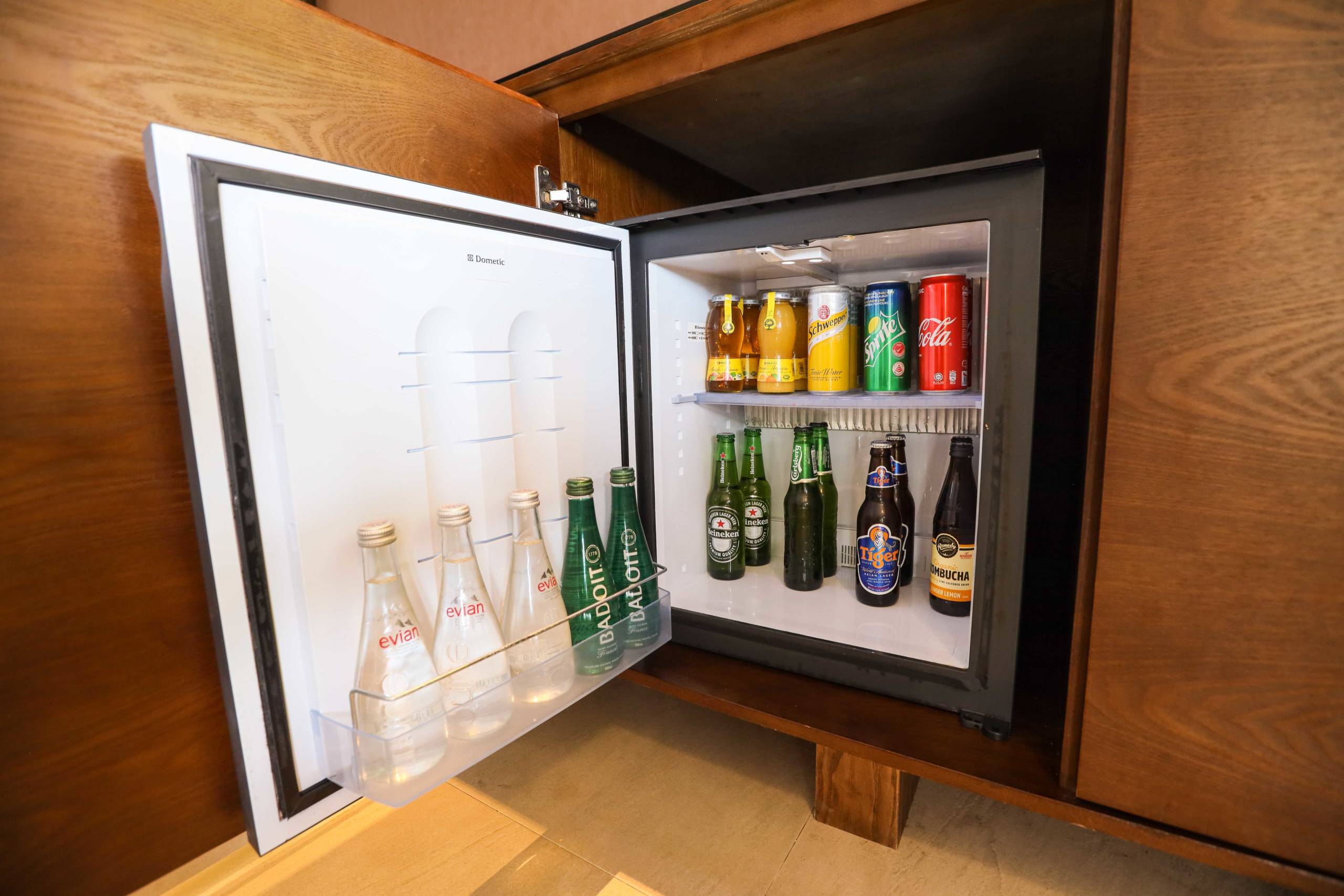 There was a red Nespresso machine with complimentary capsules, complimentary glass bottles of water set out around the room, a well-stocked minibar (which had free soft drinks) and a separate wine fridge.