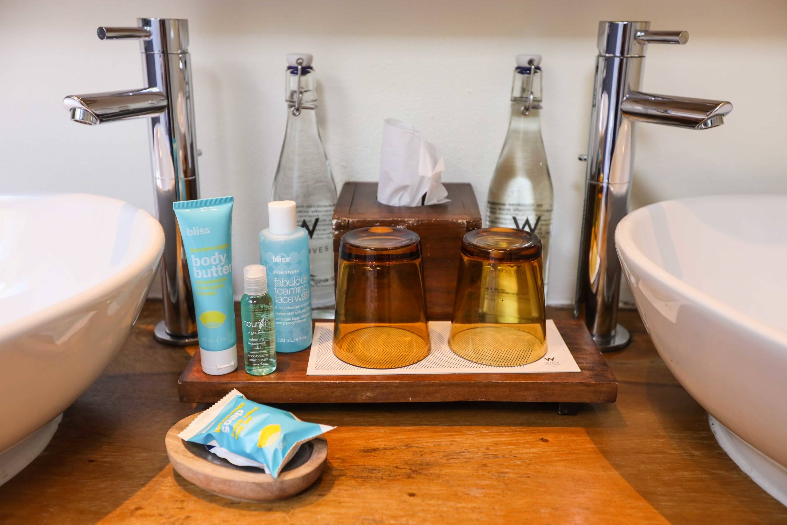 There were generous amenities in the bathroom, including larger-than-usual bottles of Bliss shampoo, conditioner, foaming face wash, shower gel and moisturizer. (This year, W hotels throughout the world will be ditching the iconic Bliss products that they've used for the last decade or so.)