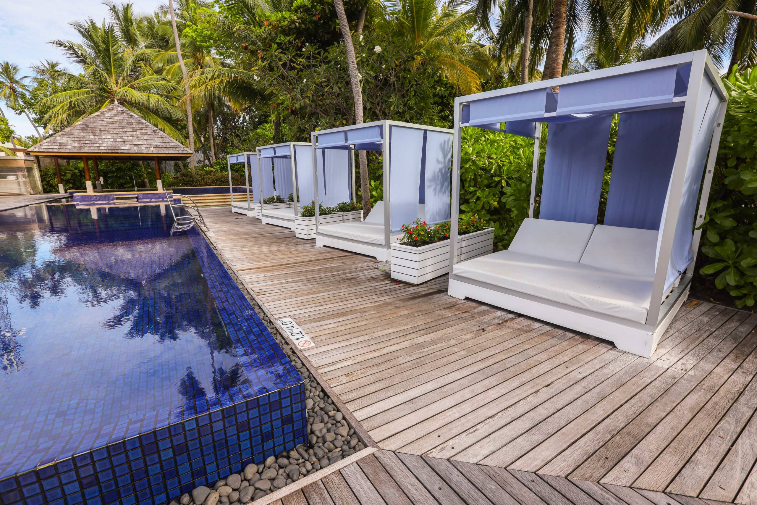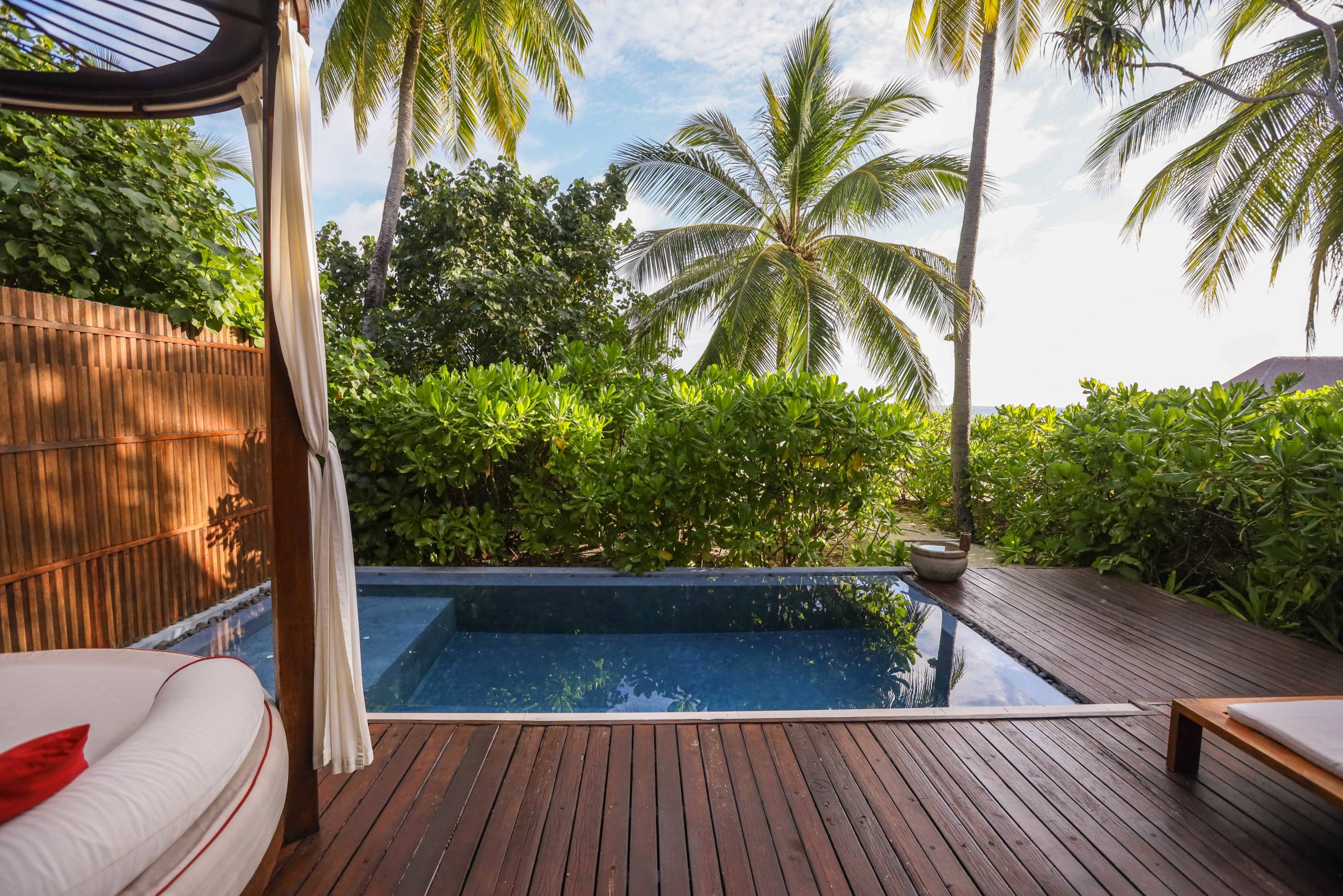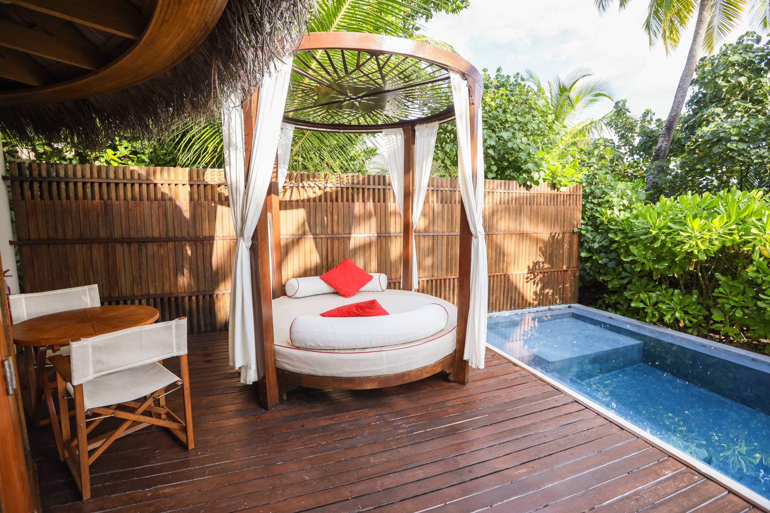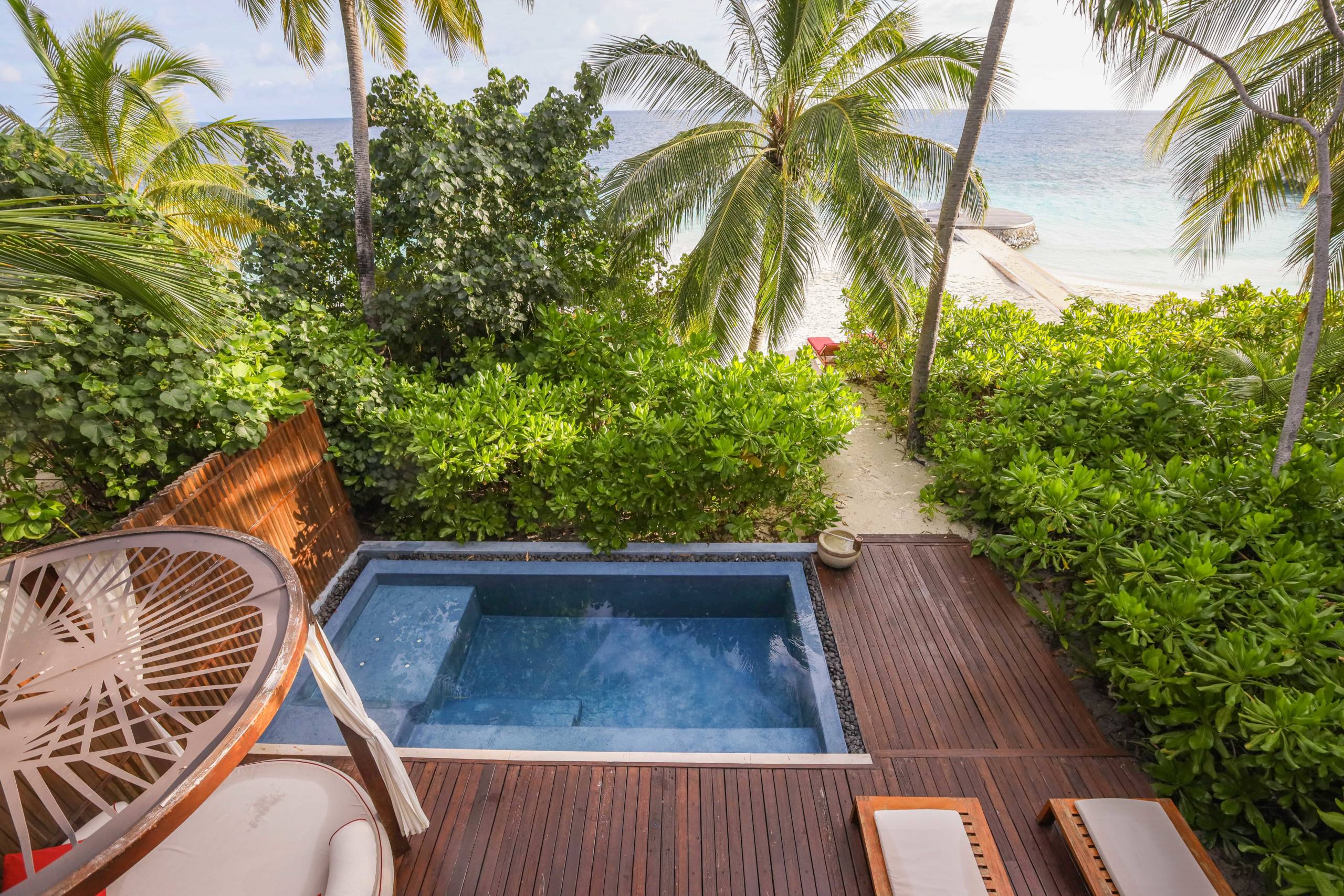 Each villa had a jacuzzi pool, and there is a large public pool with various seating options around it from sun loungers to daybeds. It was always quiet around the pool -- most guests opted for the beaches only a few feet away.
