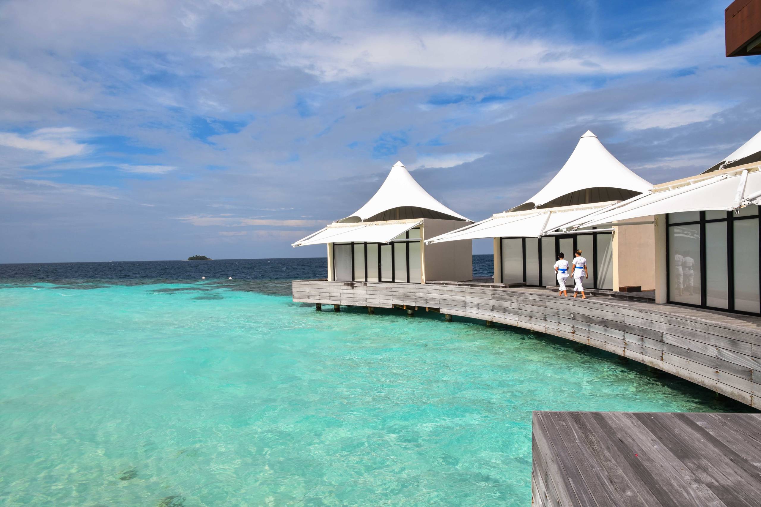 To reach the island, you take a seaplane for a 20-minute flight from Male's Velana International Airpot (MLE). As mentioned above, the mandatory transfer costs $505 round-trip per person (children under 12 pay $235 and children under 3 are free).