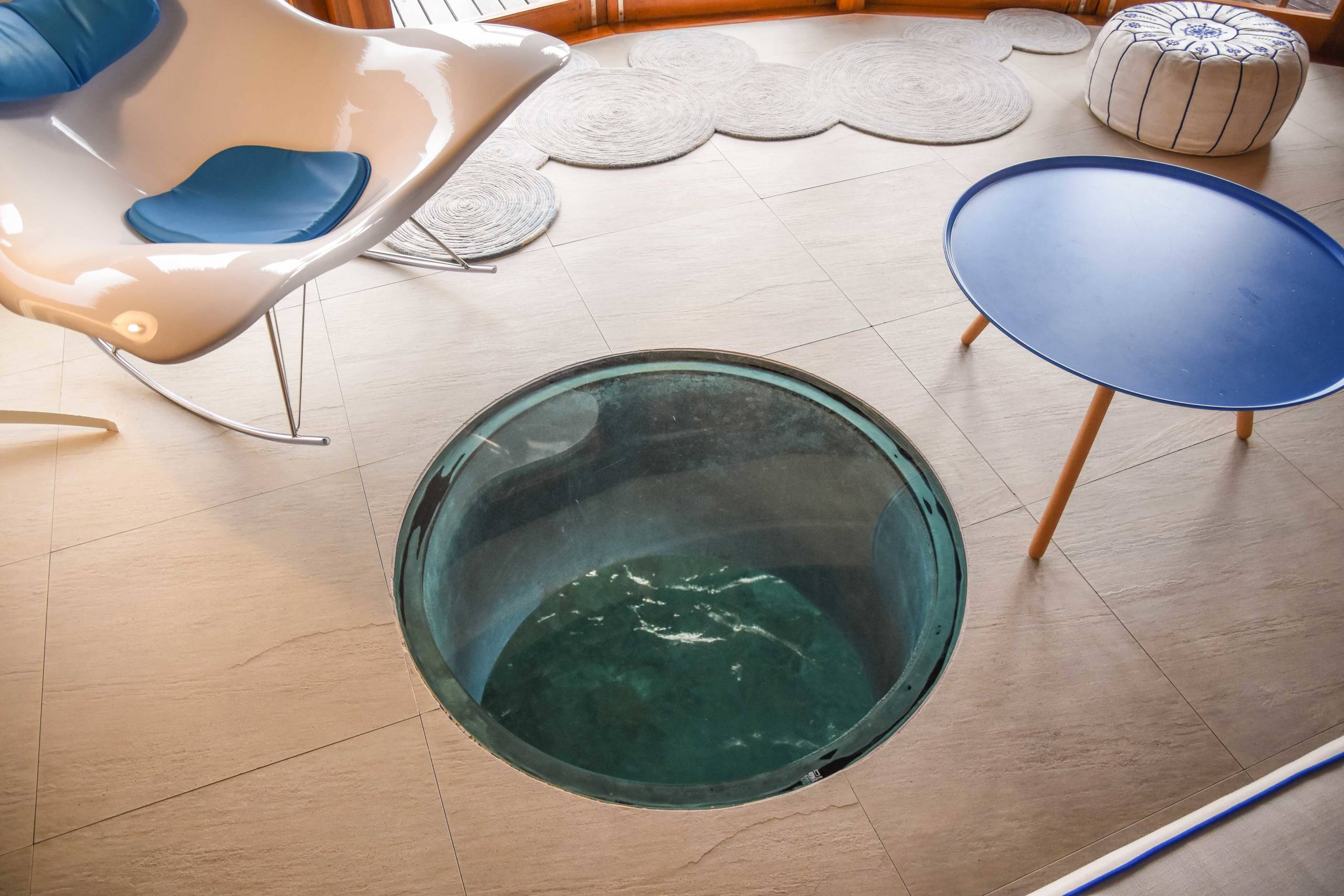 The room also featured a glass viewing hole in the middle of the floor so you could sit and watch the fish swim by, although it was small and more of a gimmick. The unrestricted views of the sea on the terrace were much more interesting.