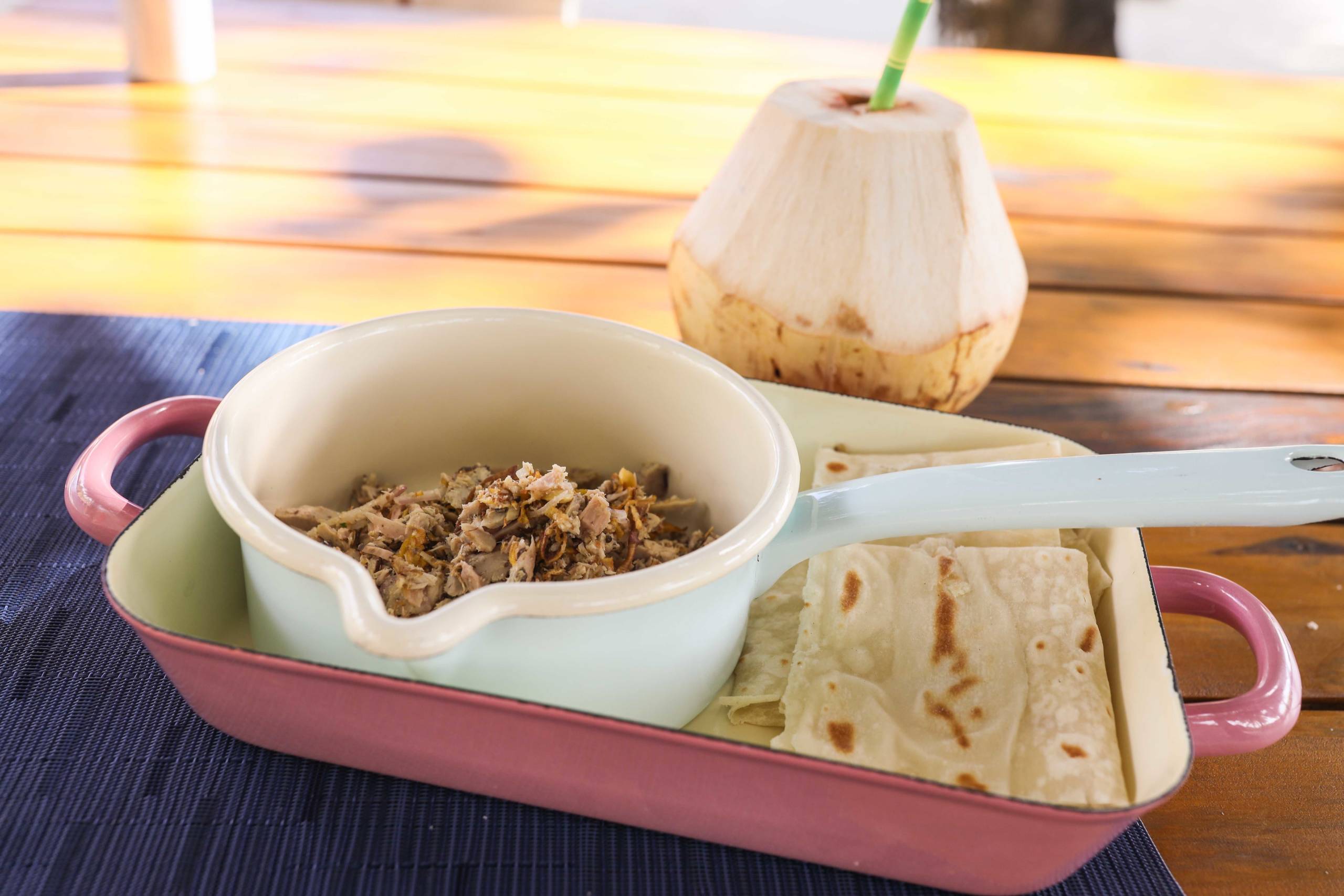 KADA serves traditional Maldivian fare by the beach on benches and swing seats. The Masroshi, a mix of tuna, coconut and chili with roti was the perfect light beach lunch, washed down with coconut water from a freshly opened coconut.