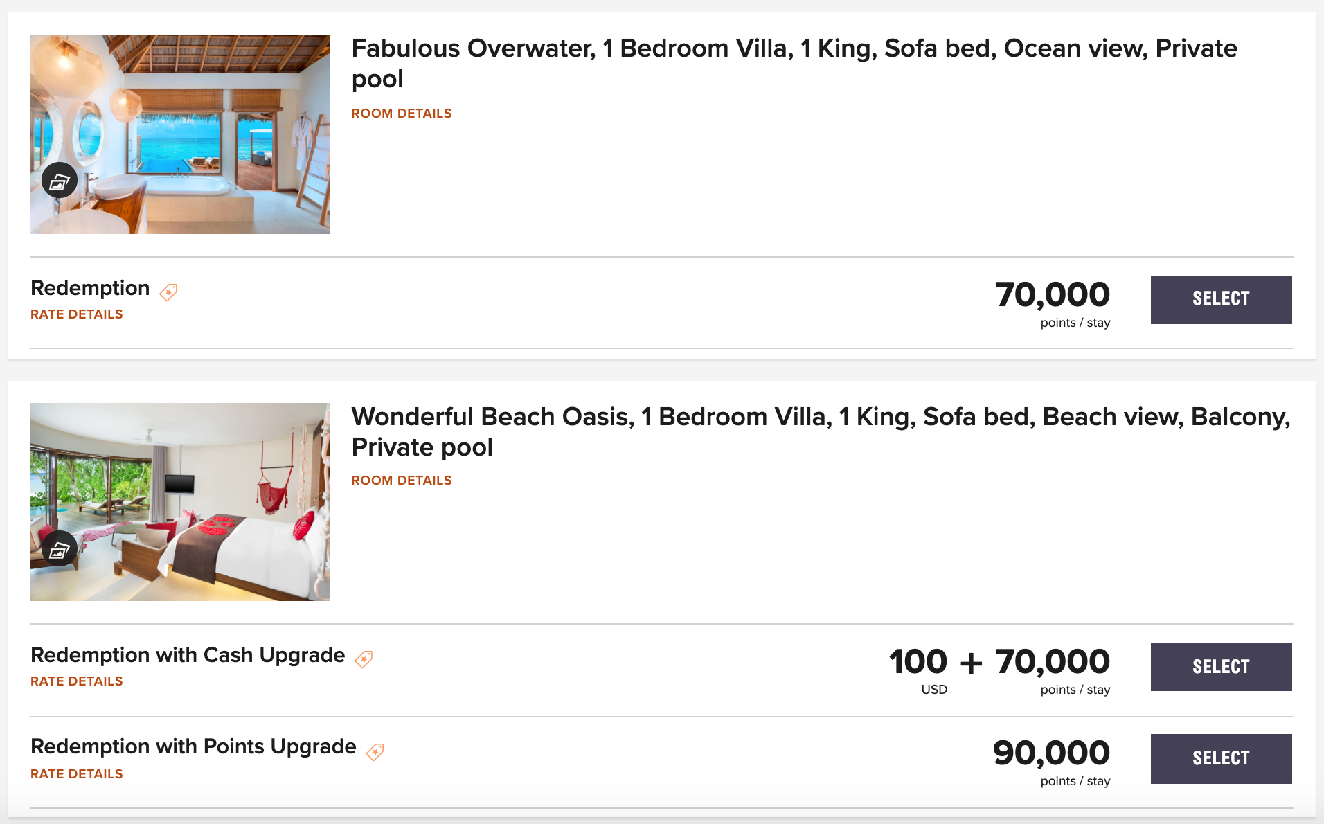 When we booked my stay at this property, beach villas were the base rooms, but while I was on property I was told that the property would soon be mirroring the JW Marriott in making overwater villas the base room for both cash and points rates. It appears that this change has already happened, according to searches for future stays at the property.