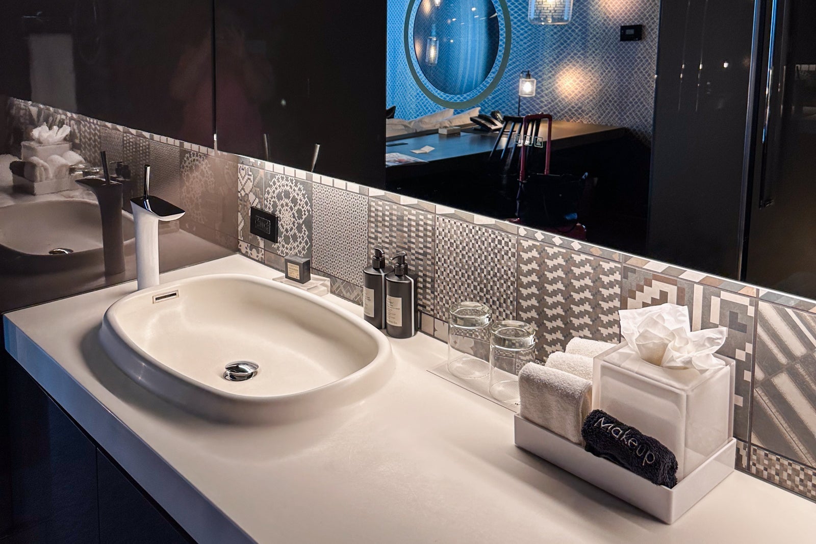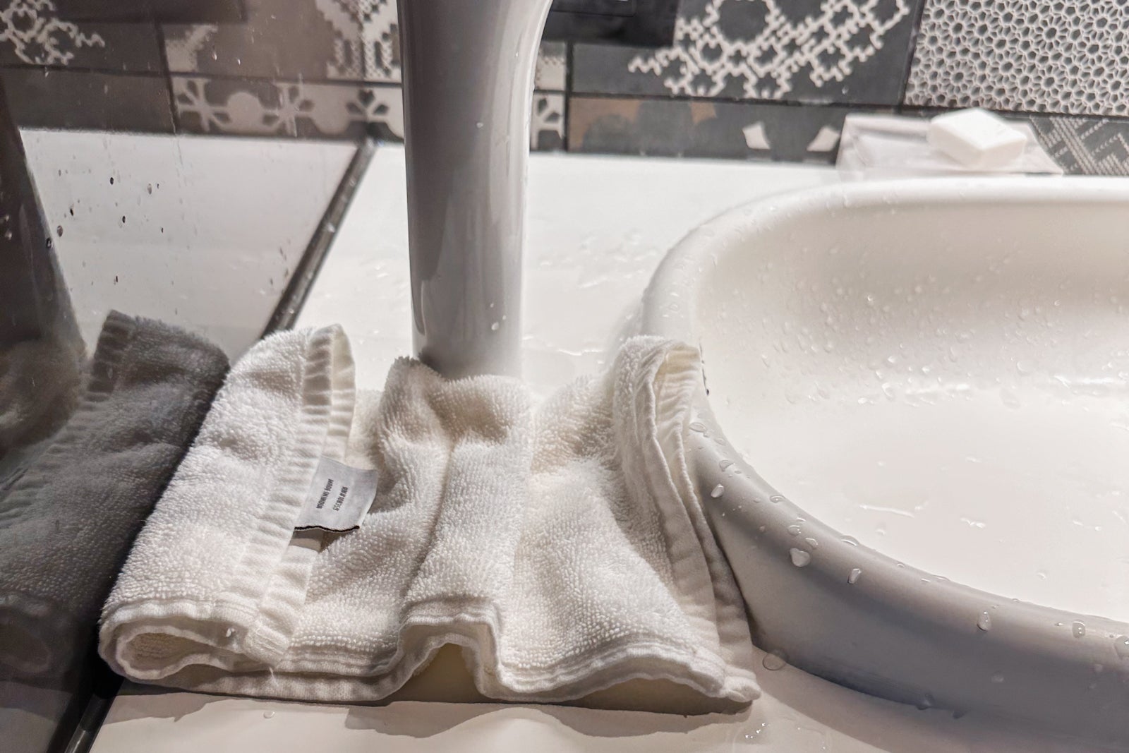 I enjoyed the thoughtful touches throughout the room, including a vanity that allowed me to dim or brighten its lighting as needed and a small reusable towel for removing makeup. The vanity, which offered a lot of surface space and was ideal for laying out my toiletry bag and hair tools, felt a bit out of place, though, due to its location at the entrance of the room instead of within the bathroom.