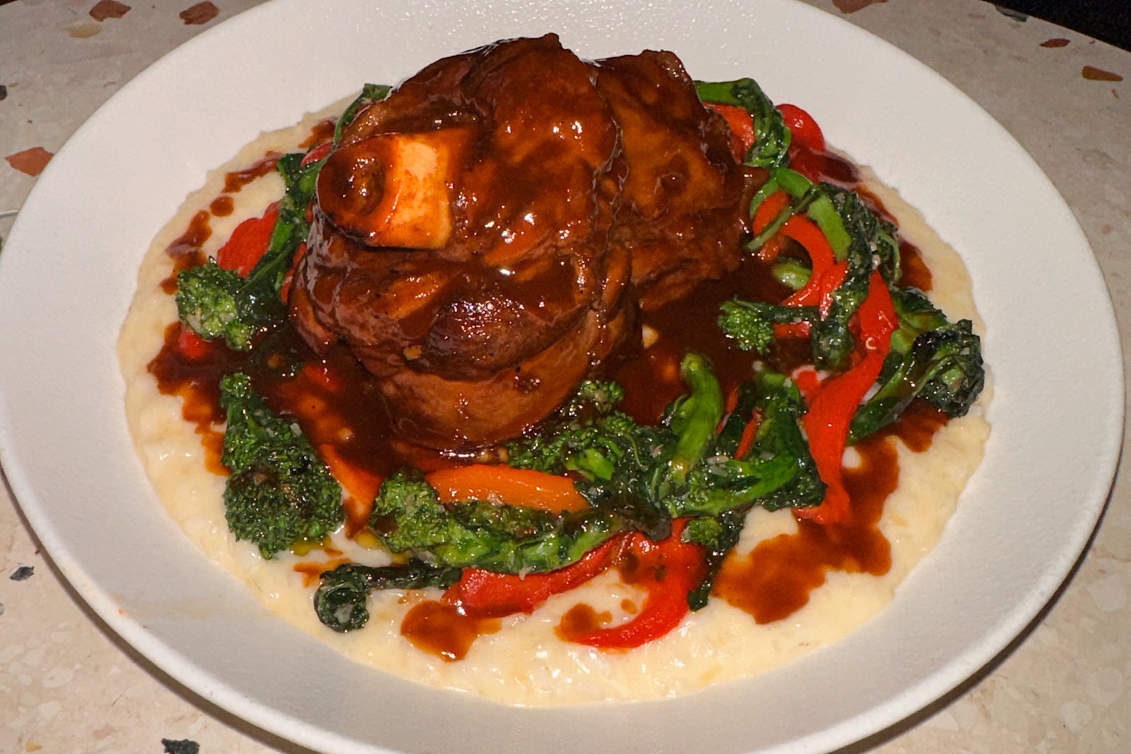 My partner ordered the lamb osso buco, which came on a bed of Parmesan risotto, broccoli rabe and roasted peppers ($46). The lamb and vegetables were flavorful, but the risotto fell short.