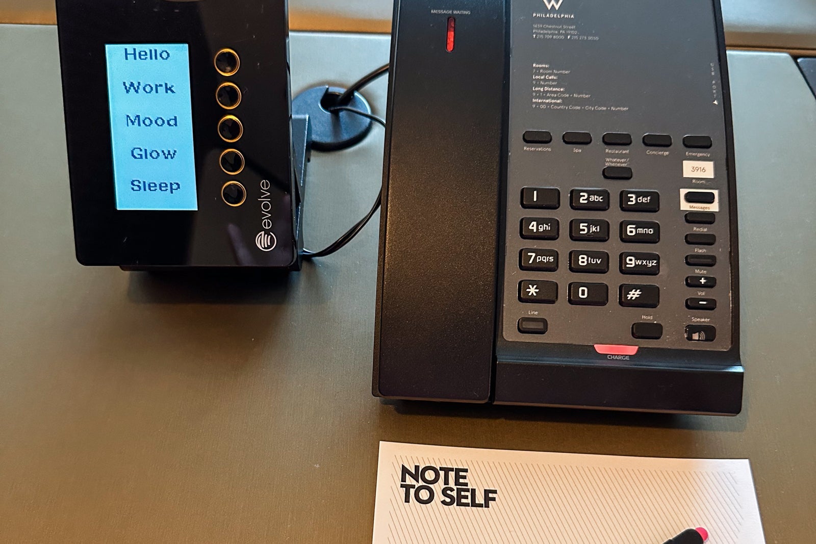 One of my favorite room features was a remote atop the workstation that had five settings for different types of lighting: