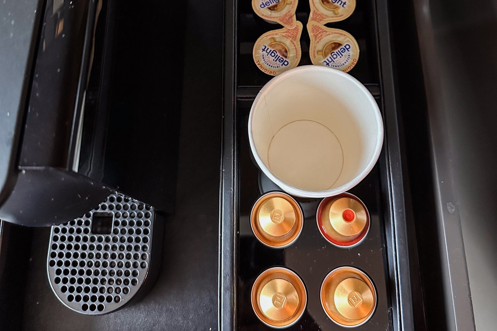 As an aspiring morning person, I was so glad to see the in-room Nespresso machine, complete with pods, cups, creamers and stirrers. The room also had a minibar with snacks that included chips, nuts and chocolates, plus beer and miniature bottles of liquor (all for a fee).