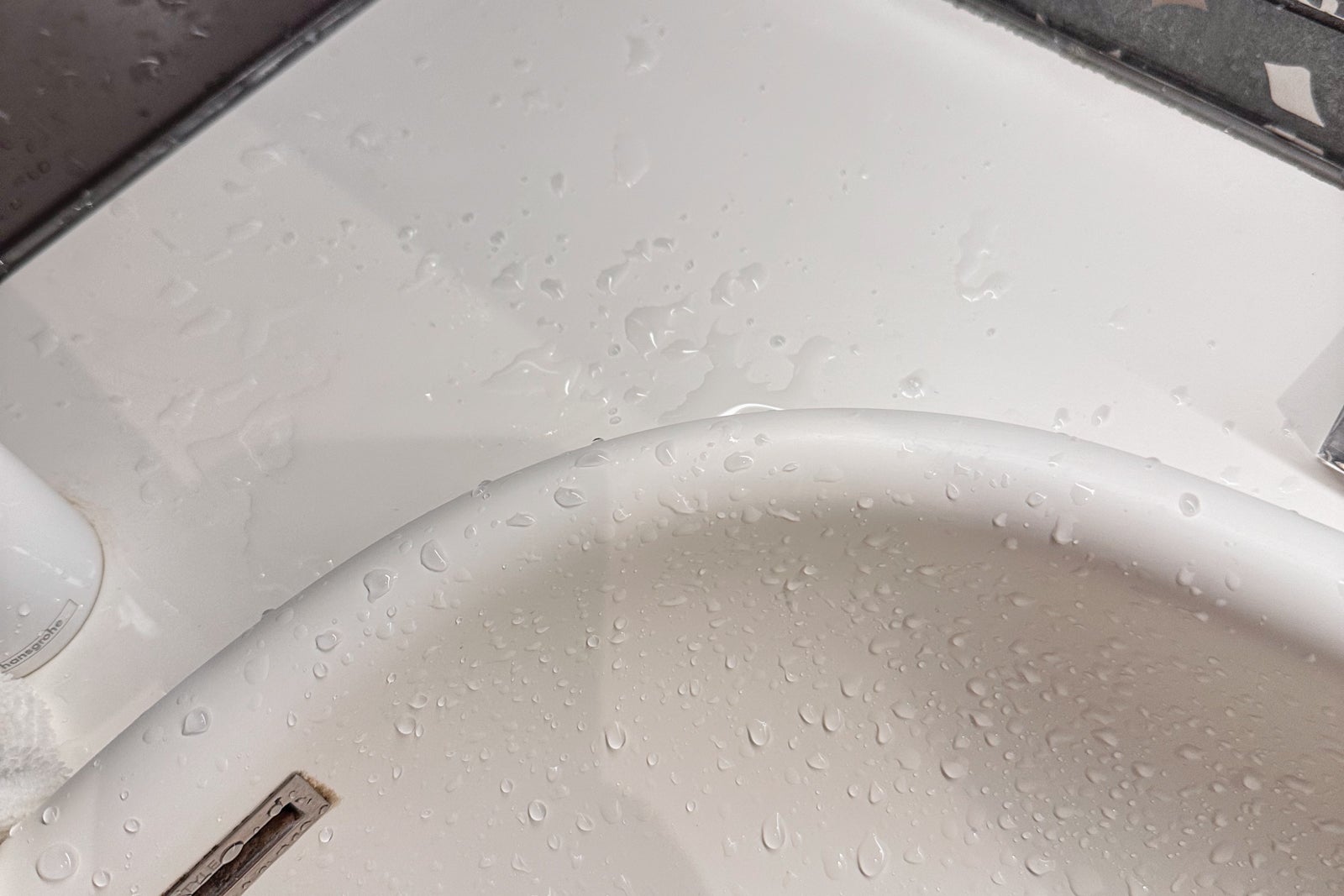 Because of how short the faucet was, water splashed everywhere whenever I tried washing my hands since I had to place my hands right up against the side of the sink to get under the flowing water. I remedied this by stuffing a small hand towel in the area where water splashed the most, but it was still an inconvenience to maneuver around.