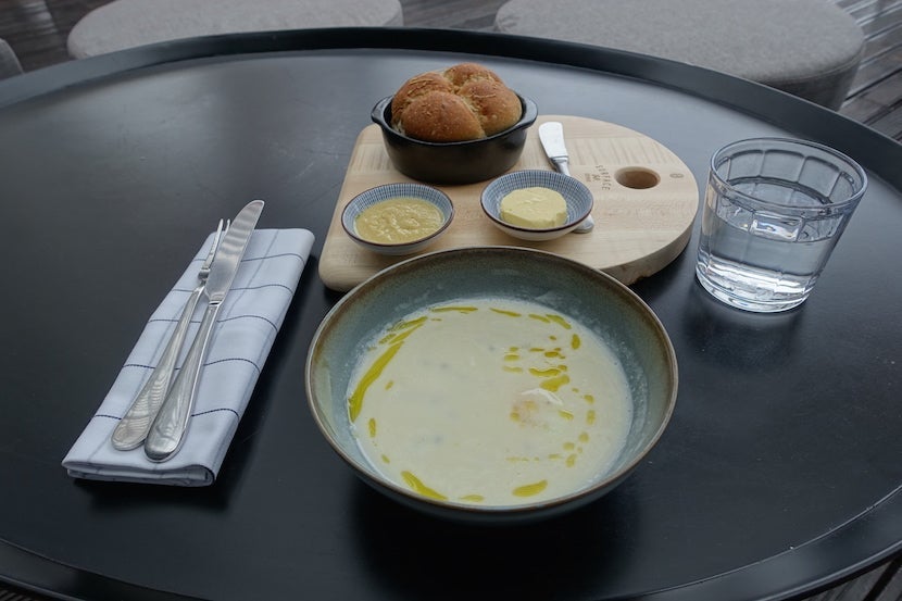 I went light and started with a cauliflower bisque with slow-cooked egg and caviar.