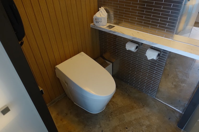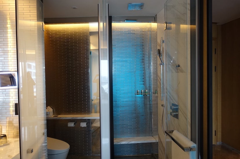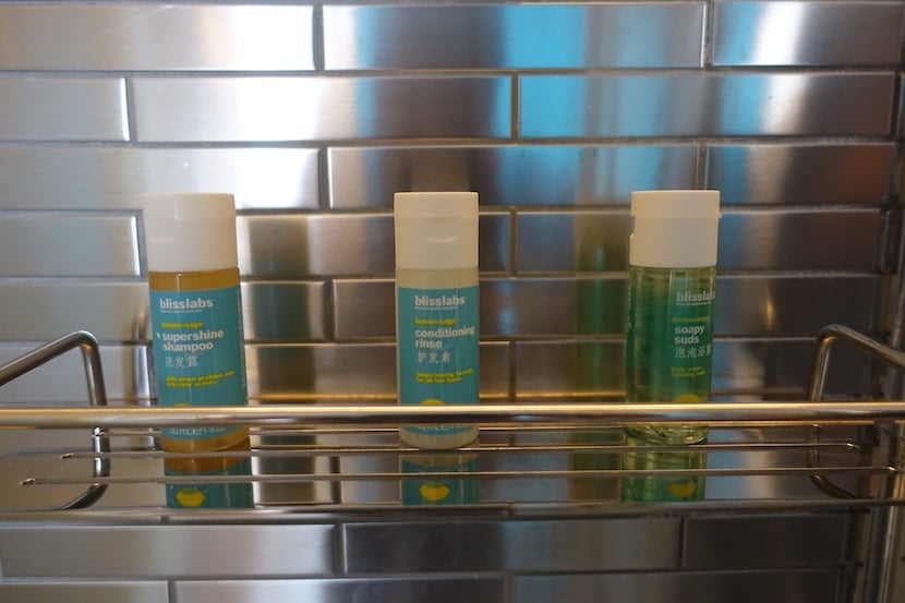 The bathroom had two light settings controlled by switches in the entry hall. One was "bright" and the other was "relax." Neither was actually bright enough to shave by properly. I know I sound like a (crotchety) broken record, but I always find W bathrooms to be way too dark.