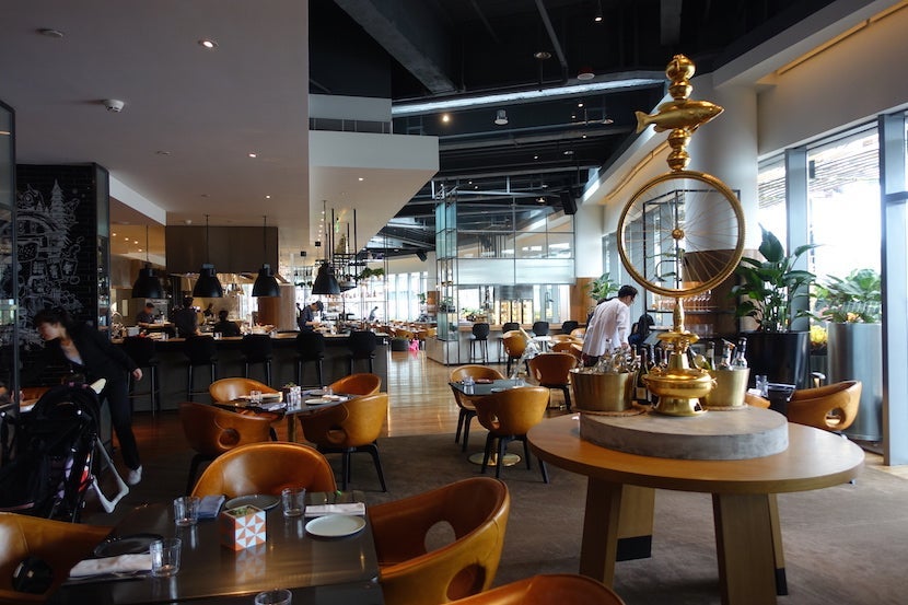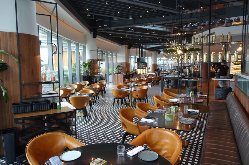 There was a mix of restaurant-style tables and sofas around low tables for more casual eating and lounging.