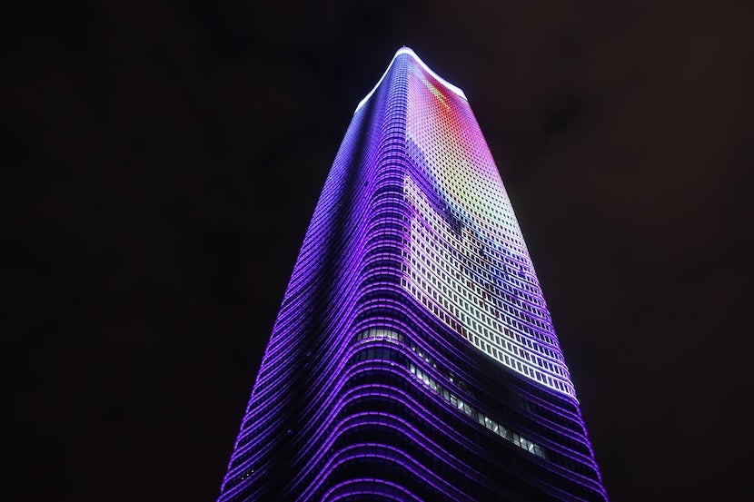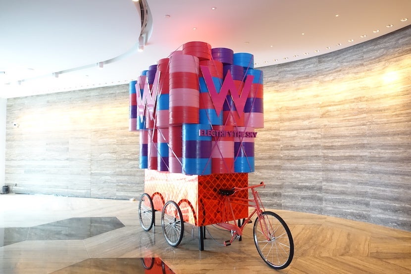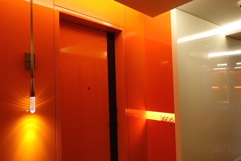 The elevators were like pink cubes and set the tone immediately as they whisked me past a white and red light sculpture that spanned several stories of a narrow atrium.