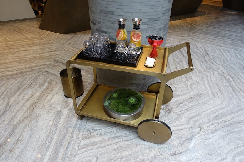 There was also a cart with cups and carafes of cucumber and citrus water to which you could help yourself.