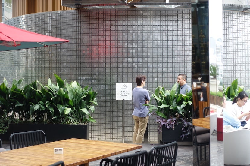 There was also a cloud of smoke drifting over the outdoor seating section from the adjacent smoking area.