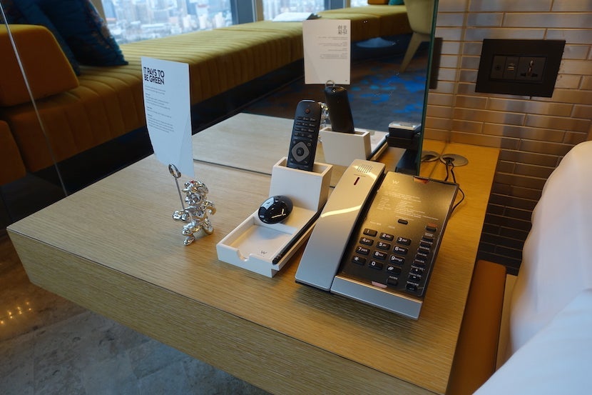 On the other side was the TV remote, another USB port and a telephone with W's signature "whatever/whenever" button that you could press for anything from housekeeping and room service to concierge suggestions. Basically, it was the one-stop shop for guests' needs. I always find it works pretty well.