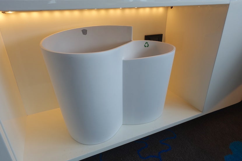 The lighting controls were interesting. There were settings for "bright," "relax" and "escape." "Bright" was indeed bright, with all the lights on the room turned up to the fullest, while "relax" was softer and very nice. Curious, I hit the "escape" button. At first it turned the recessed ceiling lighting blue, then the second time it was red. It was like being in a nightclub without strange people bumping and grinding on you.