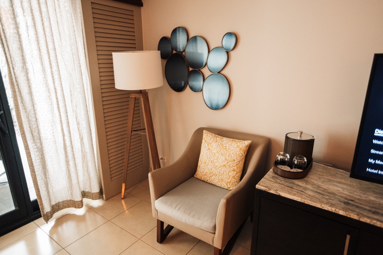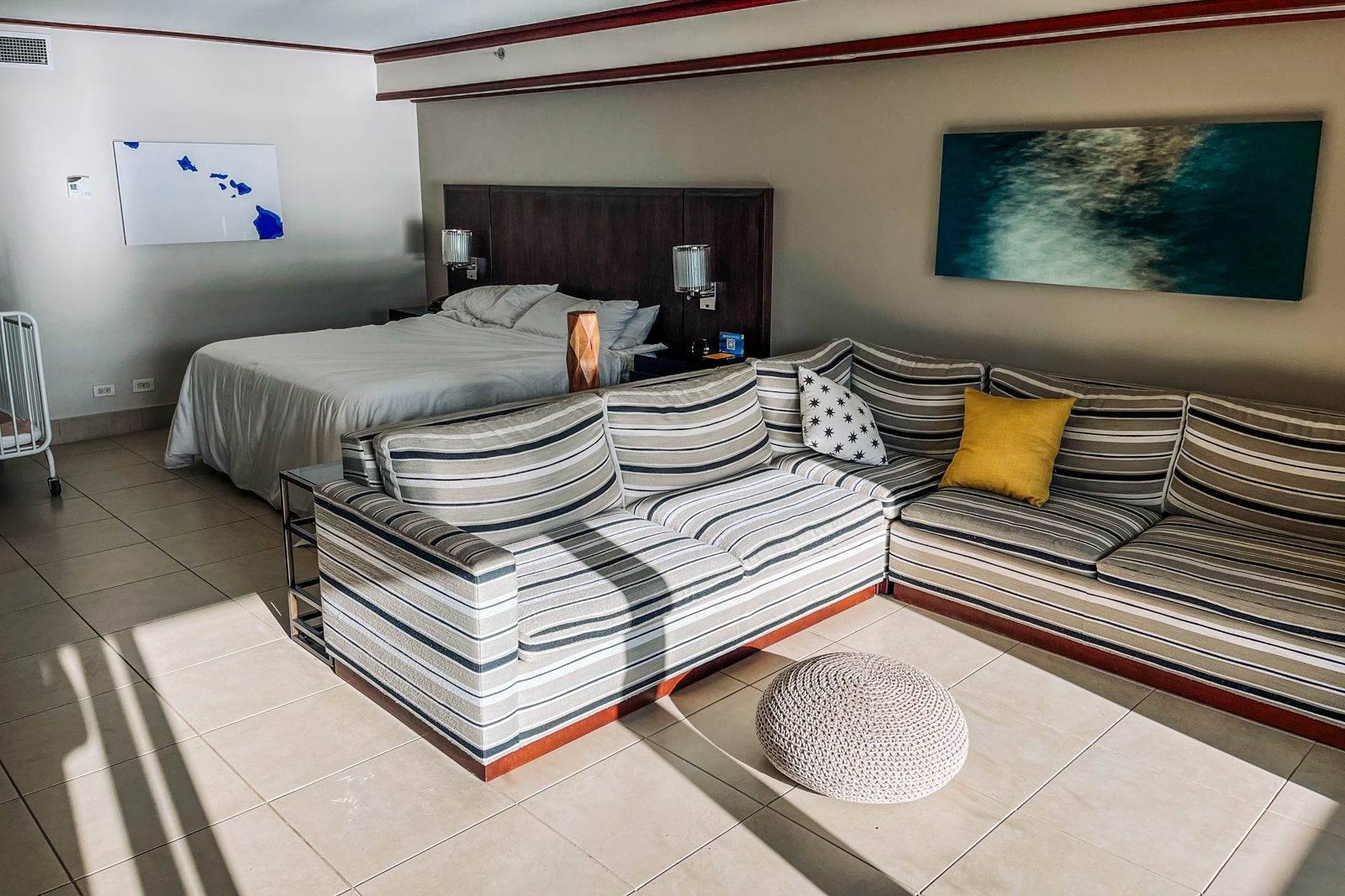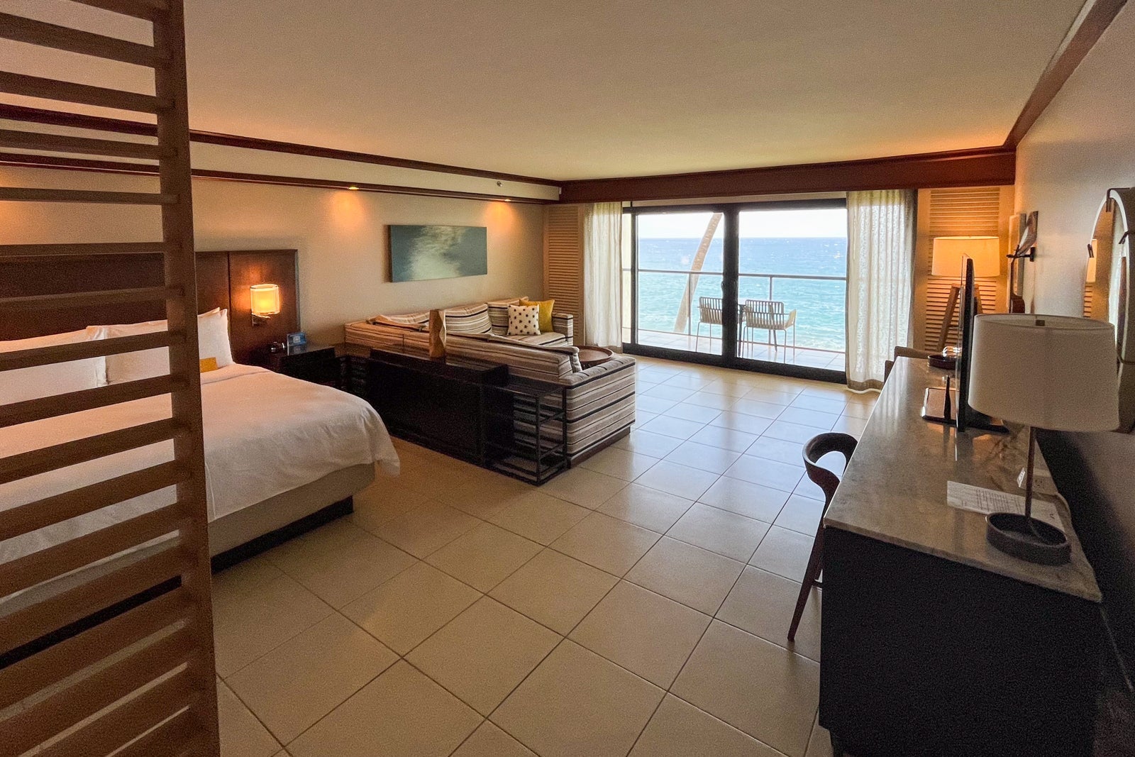This room had understated, beachy decor; however, the real scene-stealer was the nightly sunset from our balcony. The breathtaking ocean views, sunsets and space really did justify the higher price point.