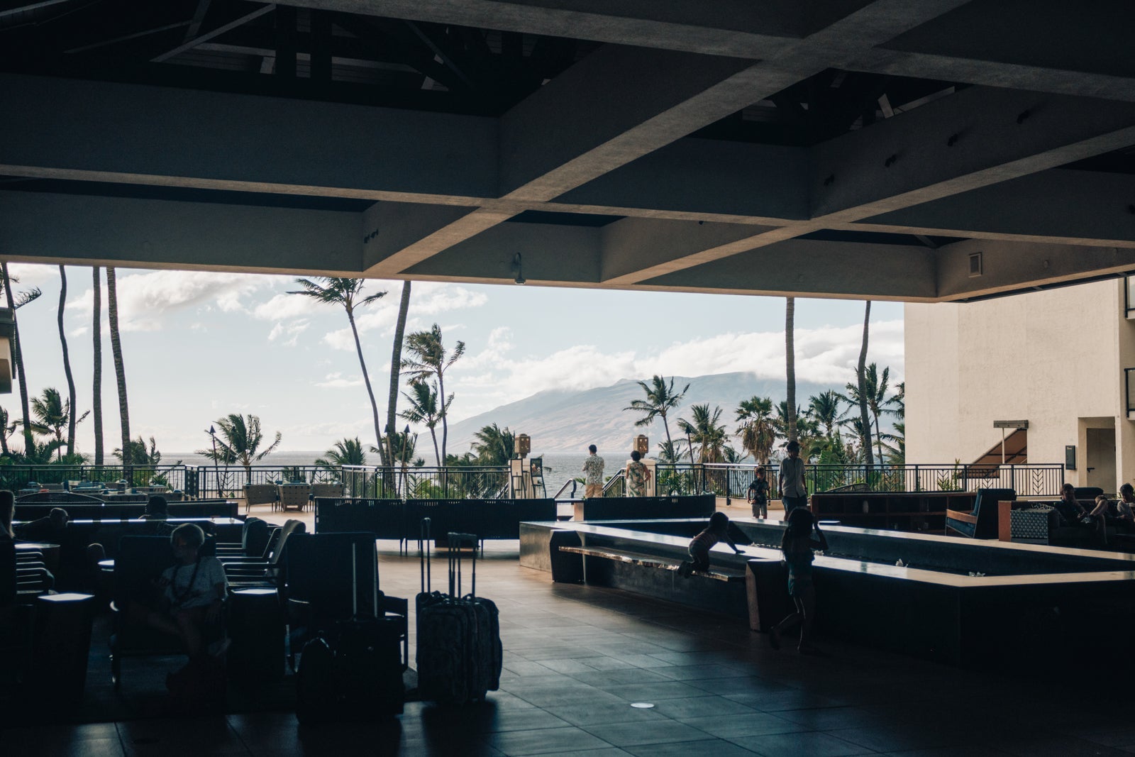 Arriving via a 30-minute shuttle ride from Kahului Airport (OGG) for $80 plus tip, we were greeted by a friendly valet and the front desk staff. They welcomed us with chilled guava juice and leis. The front desk is actually outside, next to a spacious lanai with plentiful seating and a breathtaking view of the Pacific Ocean and neighboring islands.