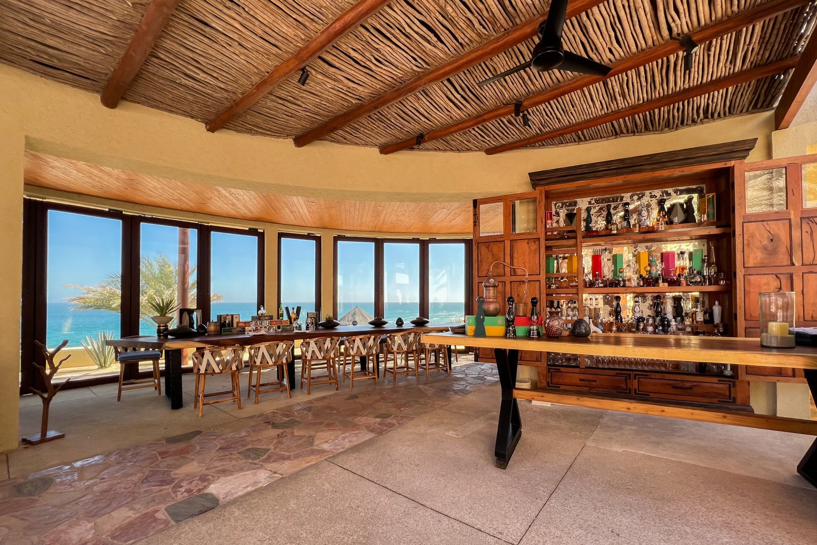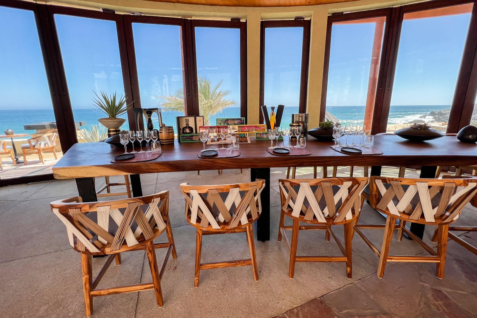 It was just a small room overlooking the resort with its own little bar featuring a selection of dozens of agave-based spirits, including tequilas and mezcals, which you could enjoy in various tastings and flights along with accompanying bites. You could have your tasting either at the long table in the space or at one of the outdoor seating areas nearby.