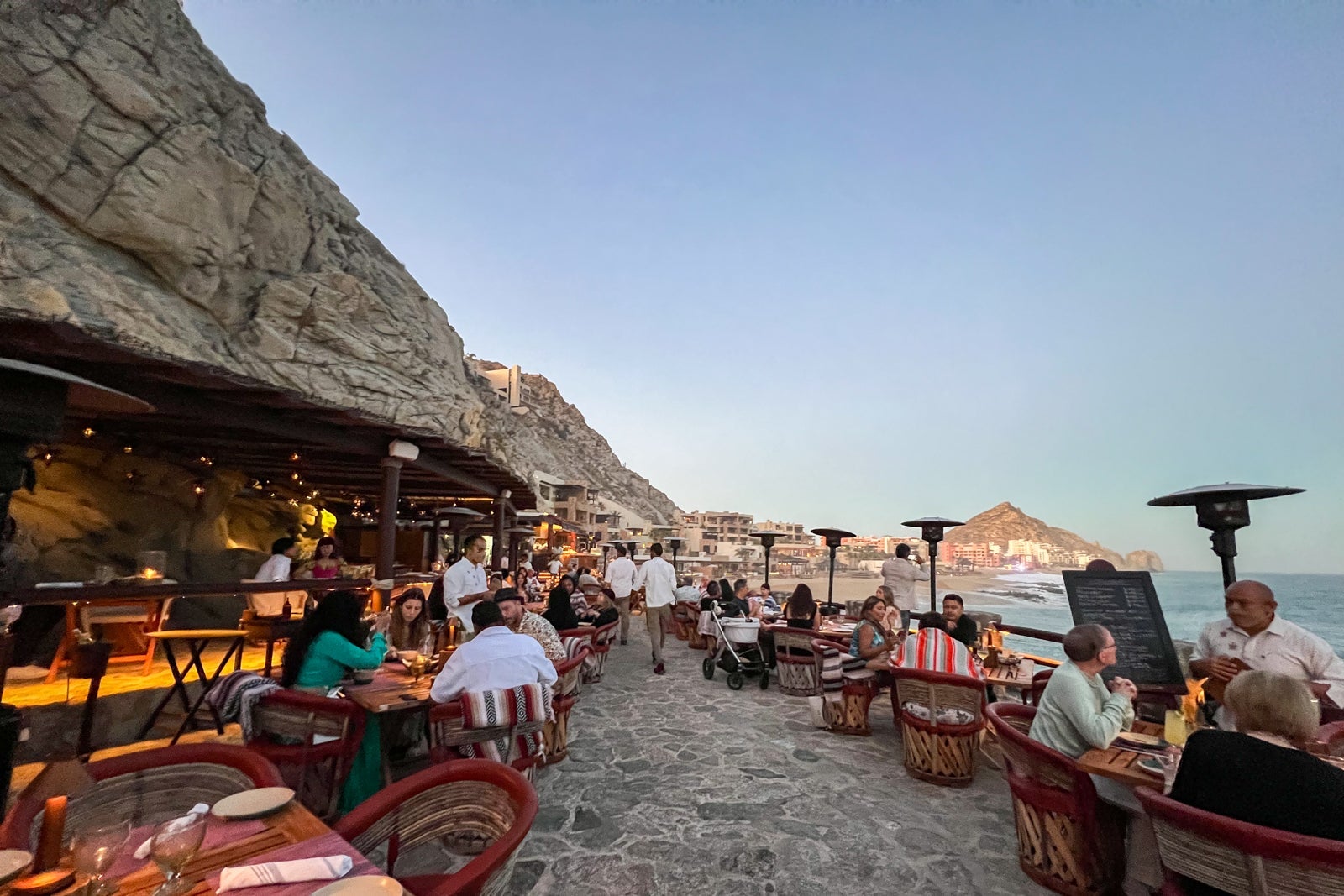 Carved into a cliffside with the surf crashing below and dreamily lit by candles and lanterns, the experience truly feels like an evening out on the Mexican Riviera, complete with live music, fresh-caught fish prepared to order and a lively crowd celebrating everything from birthdays to anniversaries and even proposals.