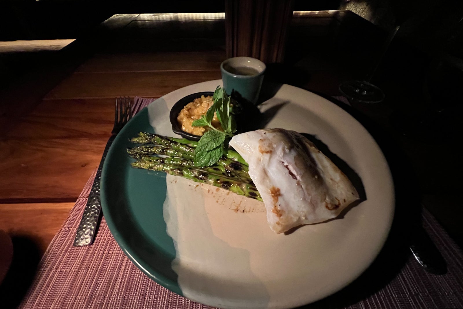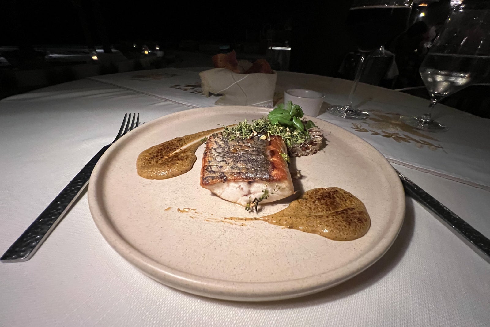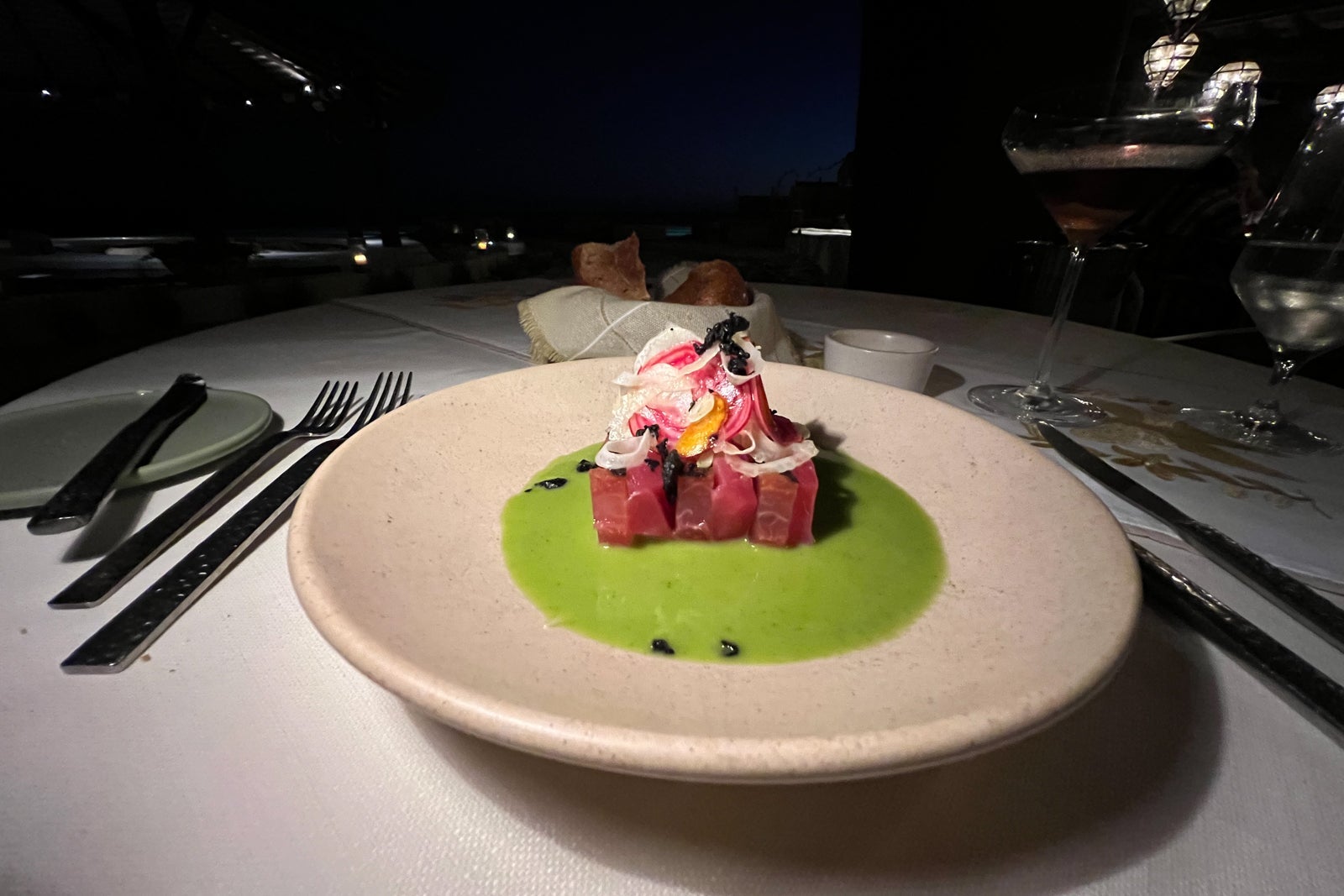 I started with a savory aguachile of bluefin tuna and grilled watermelon ($26) and had a filet of roasted totoaba (a local fish) with quinoa salad and a smoky chile cream sauce ($43) as my main. There were also vegetarian and vegan menus available.