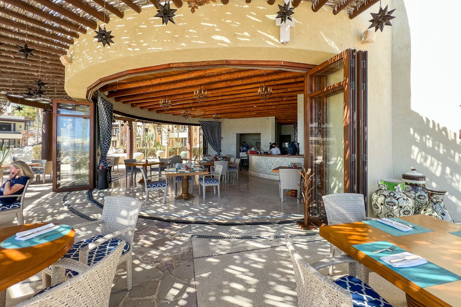 The other lunch spot at the resort is the Beach Club, down toward the eastern end of the property and just below my room. Like Don Manuel's, there are both indoor and outdoor dining areas, though the glass doors between the two were always open, so the entire space felt alfresco.
